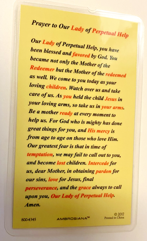 - Our Lady of Perpetual Help, Laminated Prayer Card, New #PCL-20