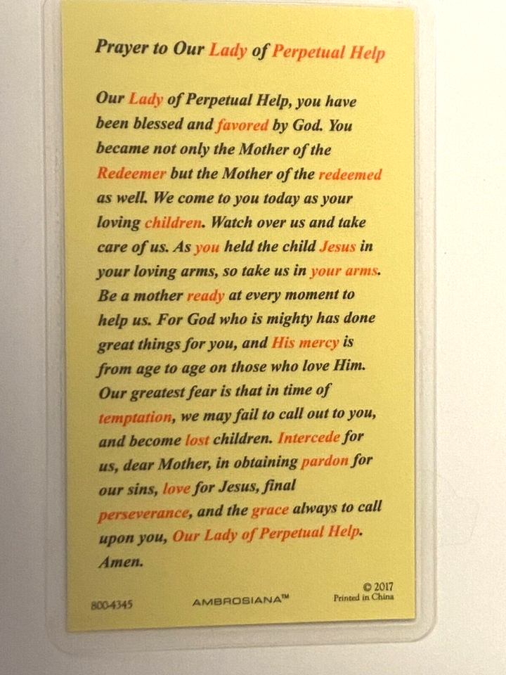 - Our Lady of Perpetual Laminated Prayer Card, New