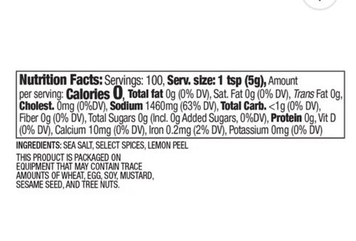 Ingredients: Sea Salt, Select Spices, Lemon Peel