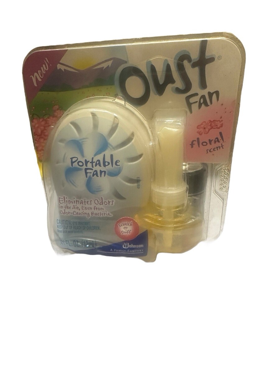 Oust Portable Fan - Floral Scent New/Old Stock - Sealed Original 2004 SC Johnson. Condition is New. Shipped with USPS Ground Advantage.