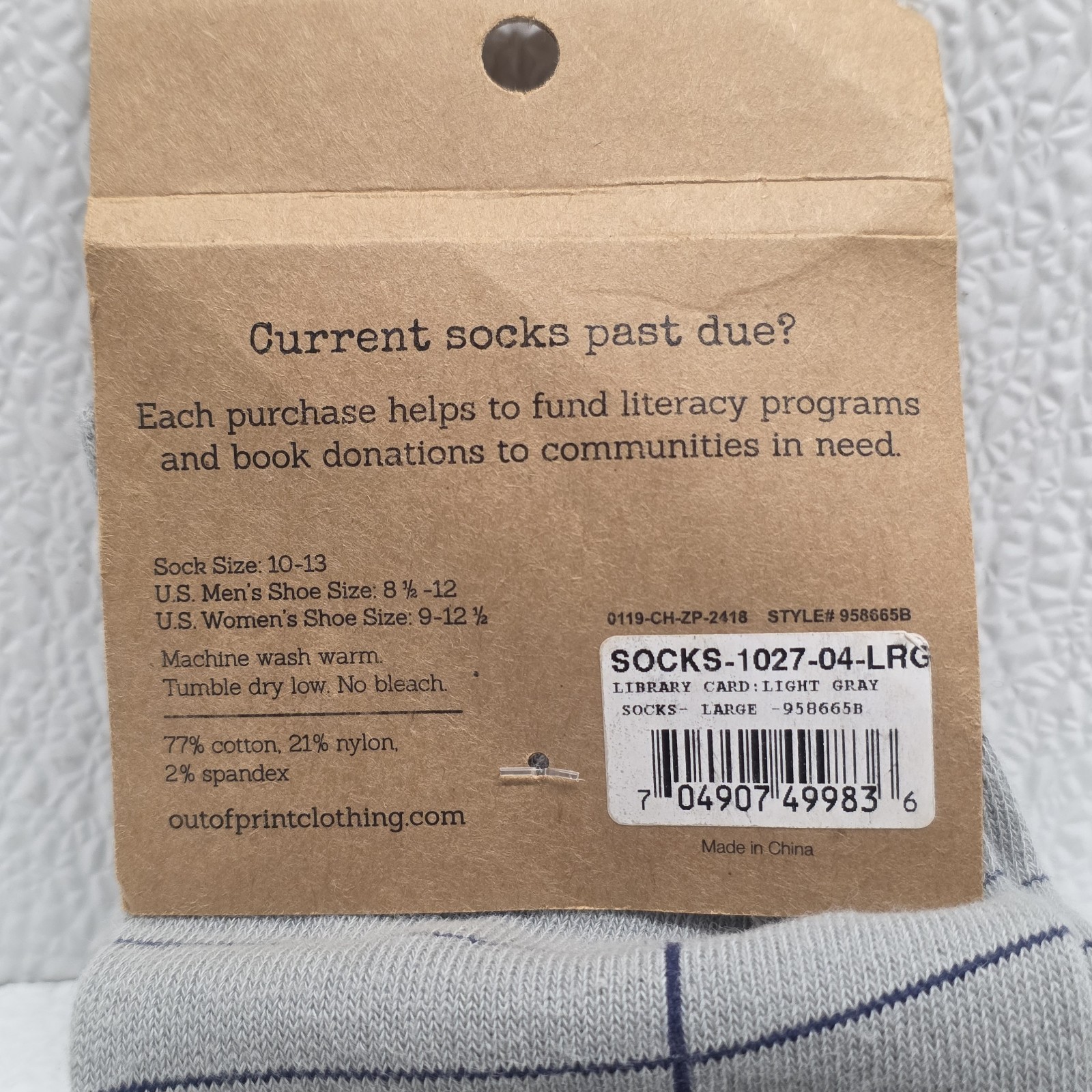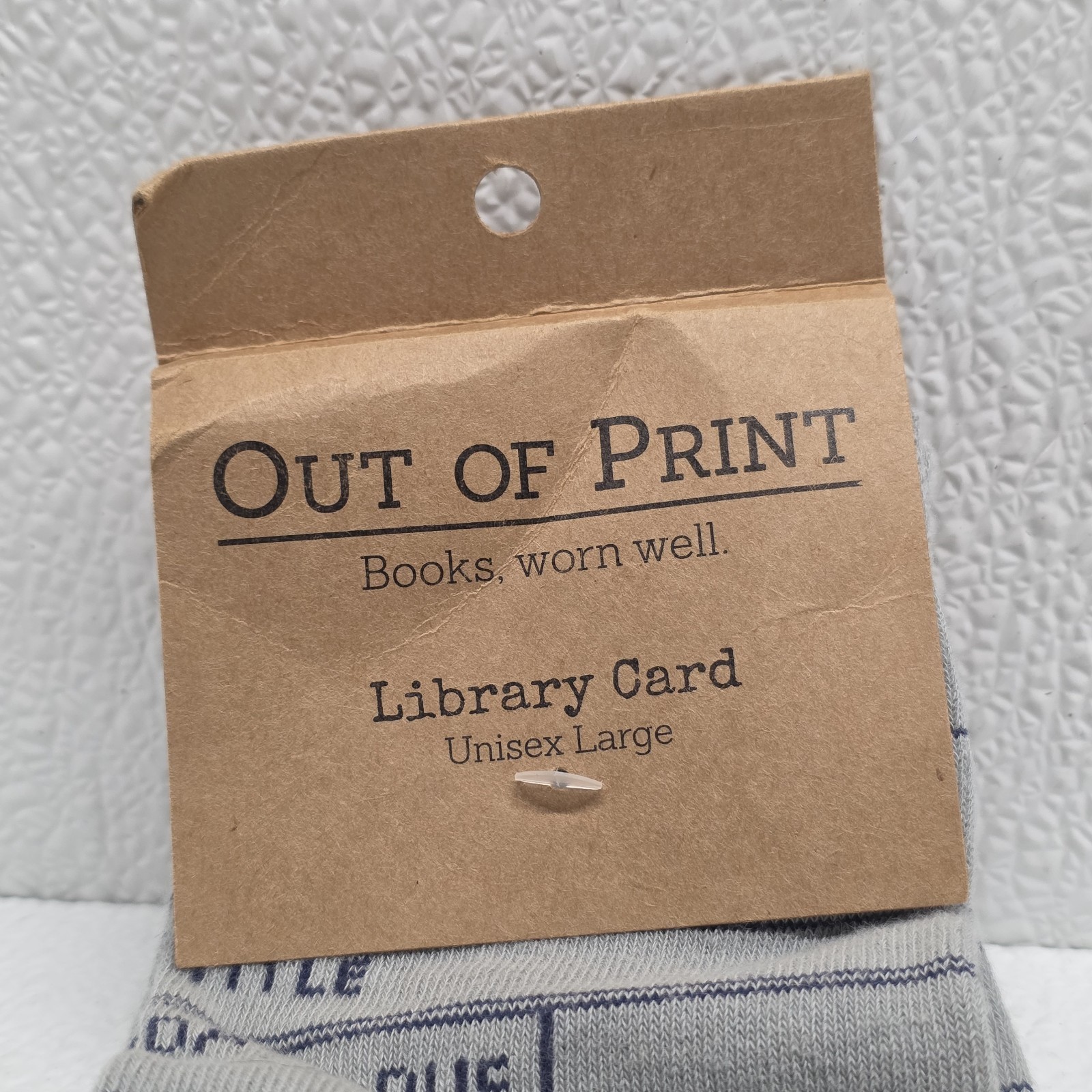 Out Of Print Socks Library Card Book Checkout Unisex Large. Images show actual item that will ship.