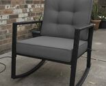 Outdoor Grey Wicker Rocking Chair with Cushions - Heavy Duty Steel Frame, Rus...