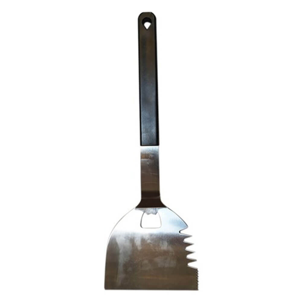 Outdoor Magic BBQ Champ Spatula is made of Stainless Steel and with its long handle, you can flip your food without burning your hands. Its bottle opener is quite handy when you're drinking beer beside your BBQ.