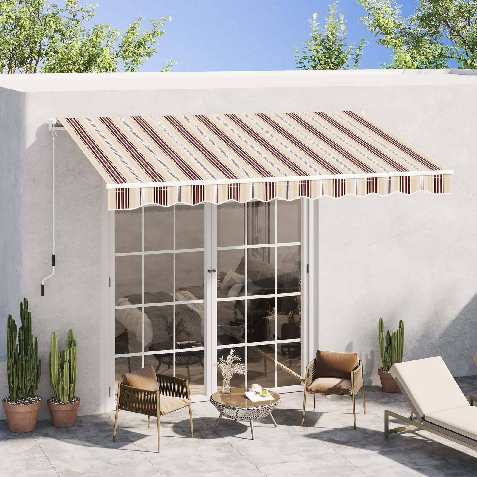 - Outsunny 13'x8' Retractable Patio Awning UV/Water-Resistant Red Stripes