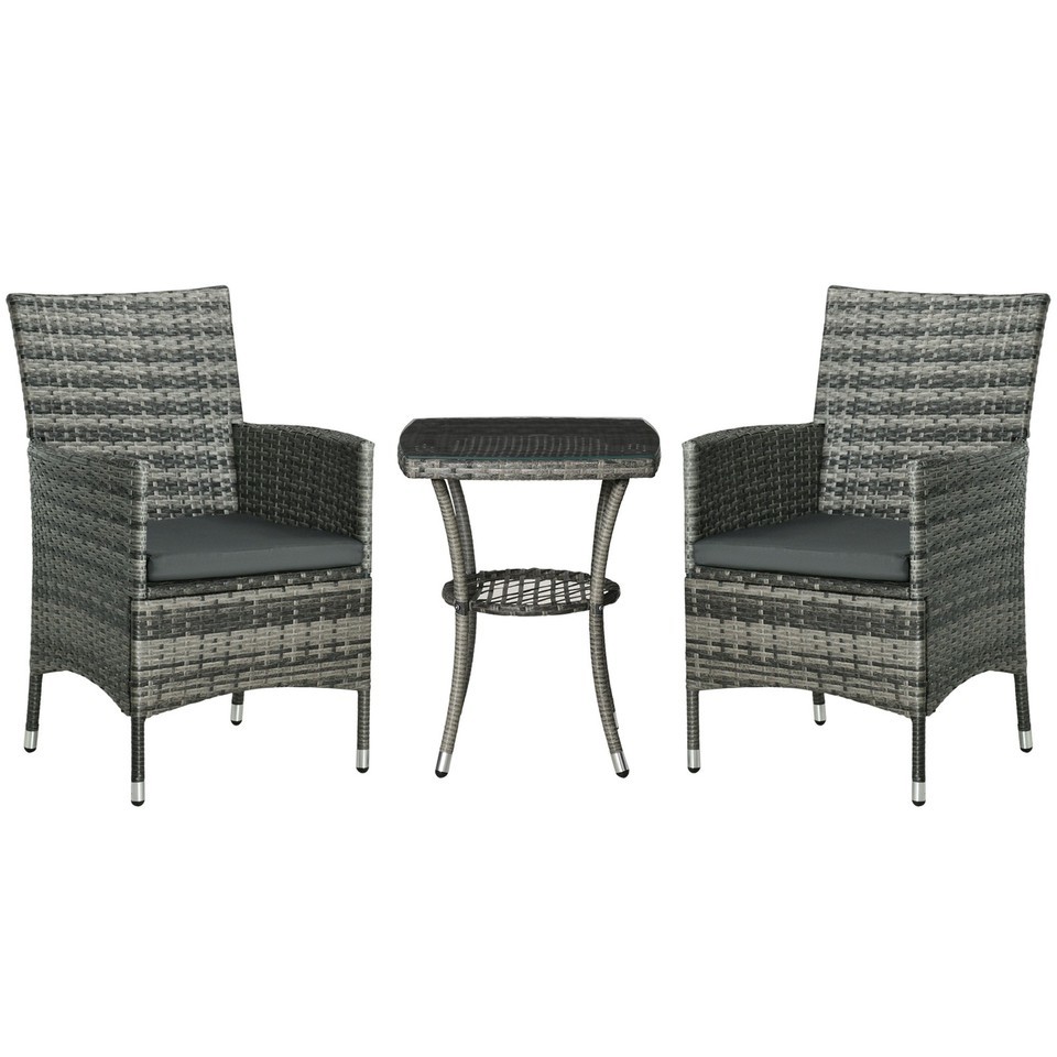 - Outsunny 3 Pieces Rattan Bistro Set, Wicker Garden Furniture Set with 2-Tier