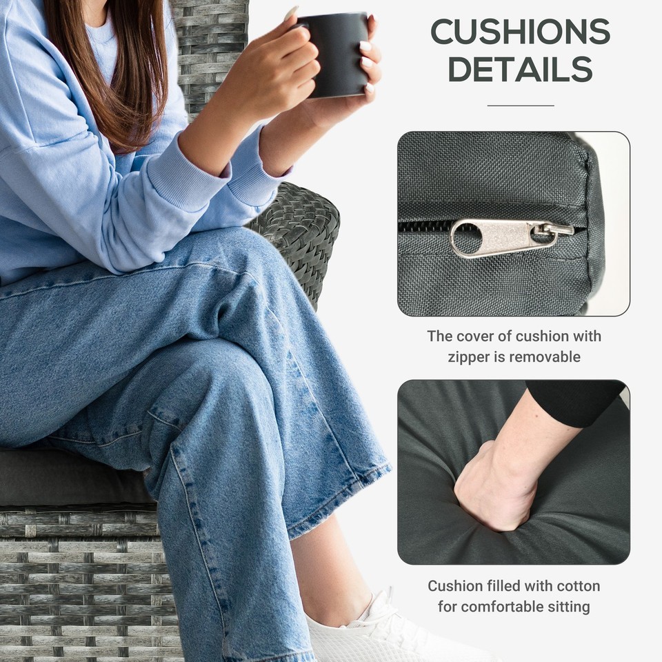 Durable and weather-resistant: Crafted with a rust-resistant steel frame and durable plastic wicker, this set withstands sun, rain, heat, and cold, ensuring long-lasting use.