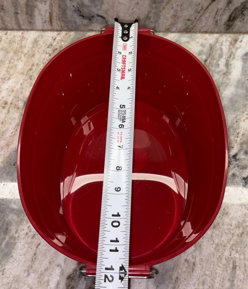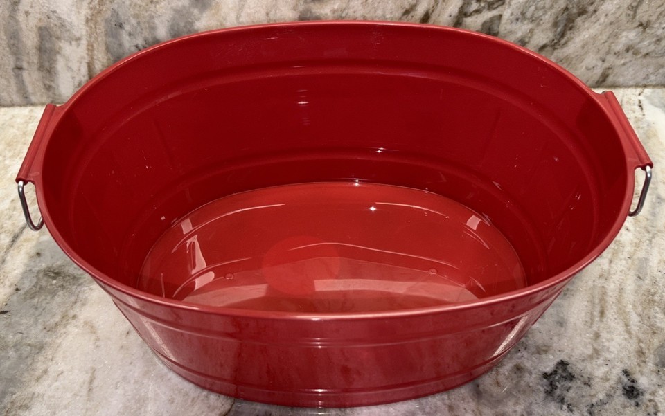 - Oval Red Plastic Storage Tub Ice Bucket W Collapse Handles 4.5”Hx11.5”Lx9.25”W