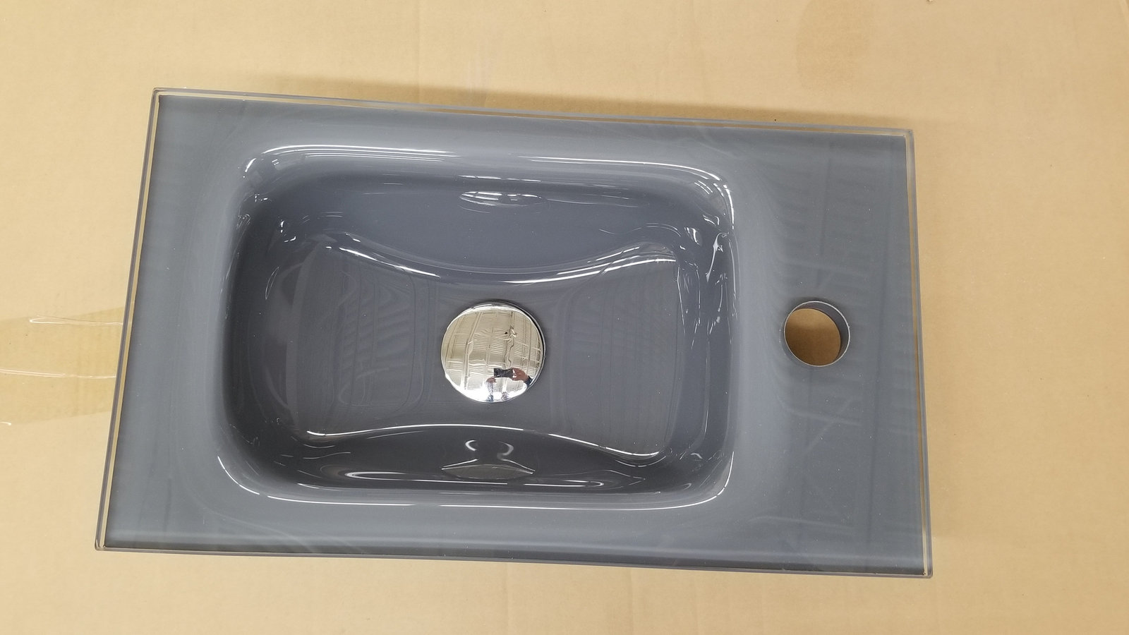Gray Tempered Glass Small Sink 17" Wide