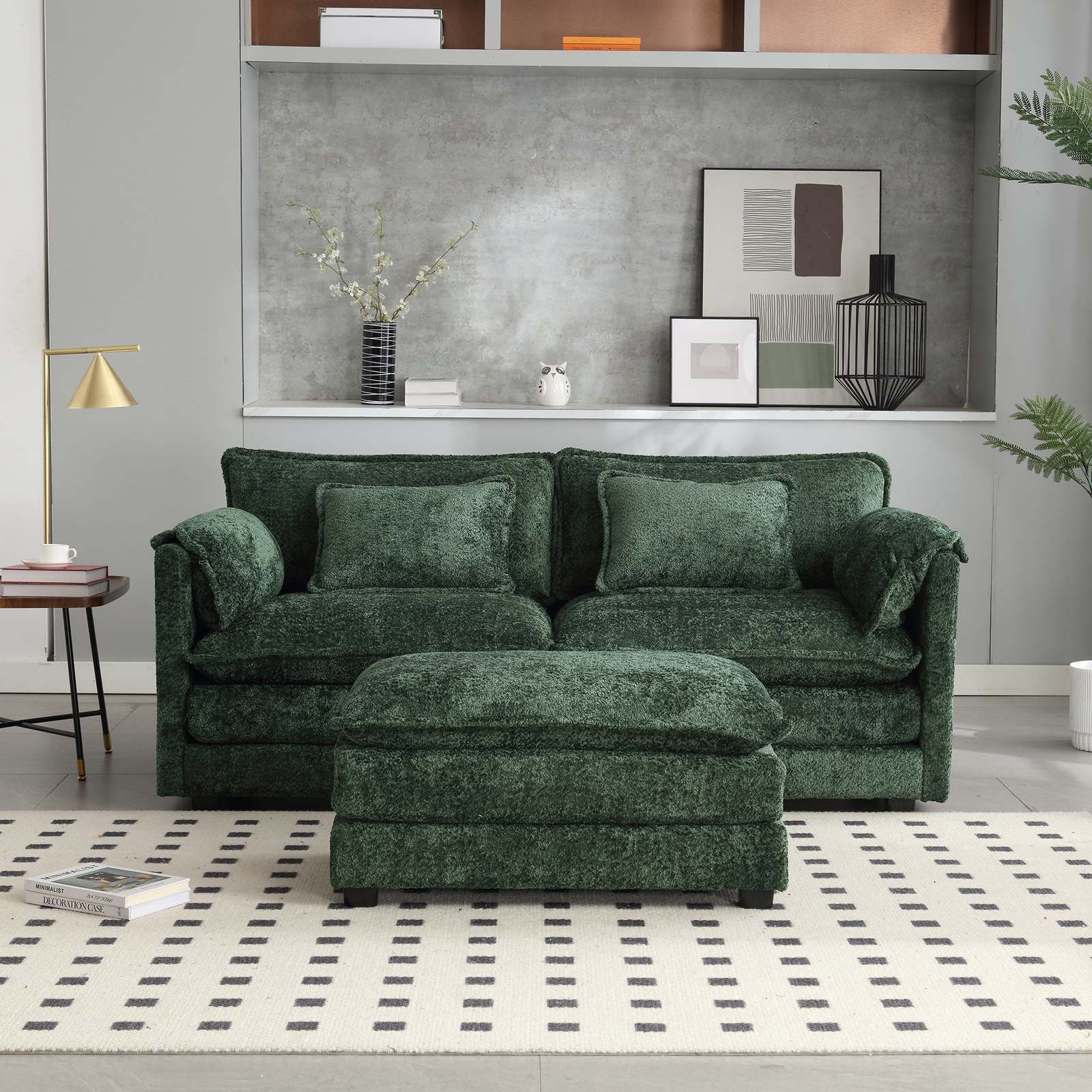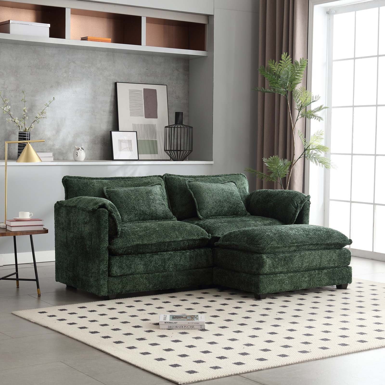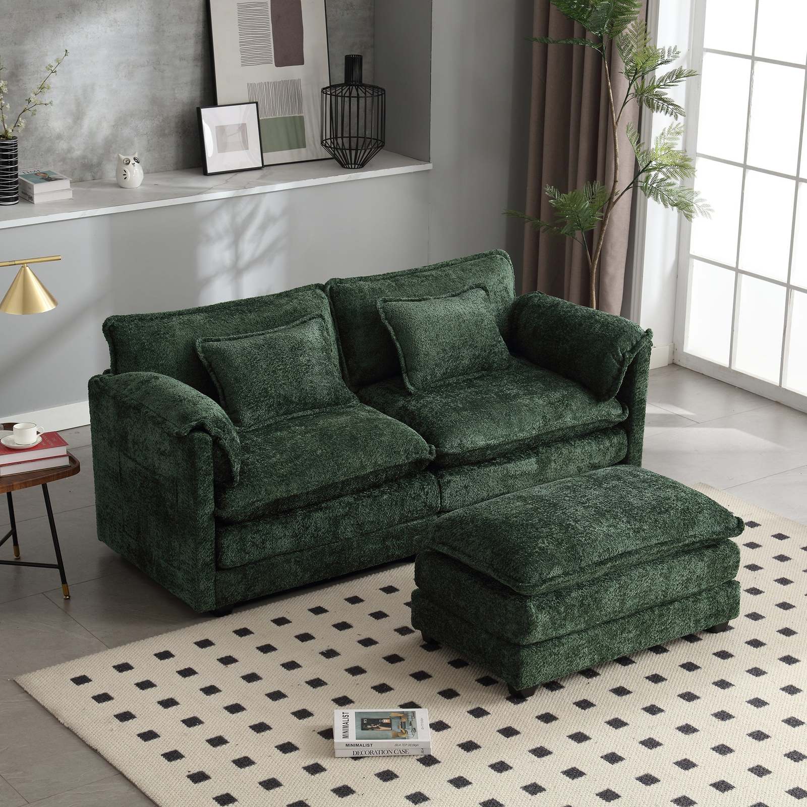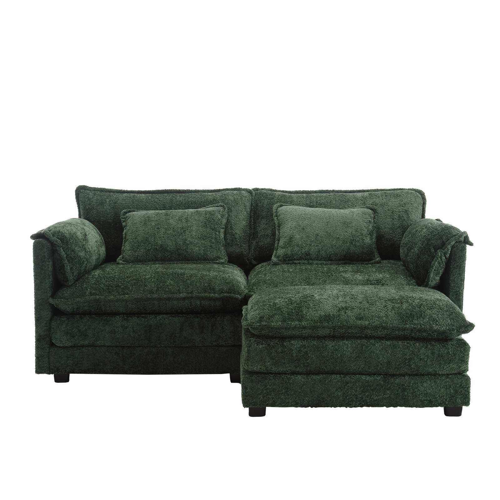 - Oversized Chenille Double Sofa with Footstool | Removable Arms + Pockets