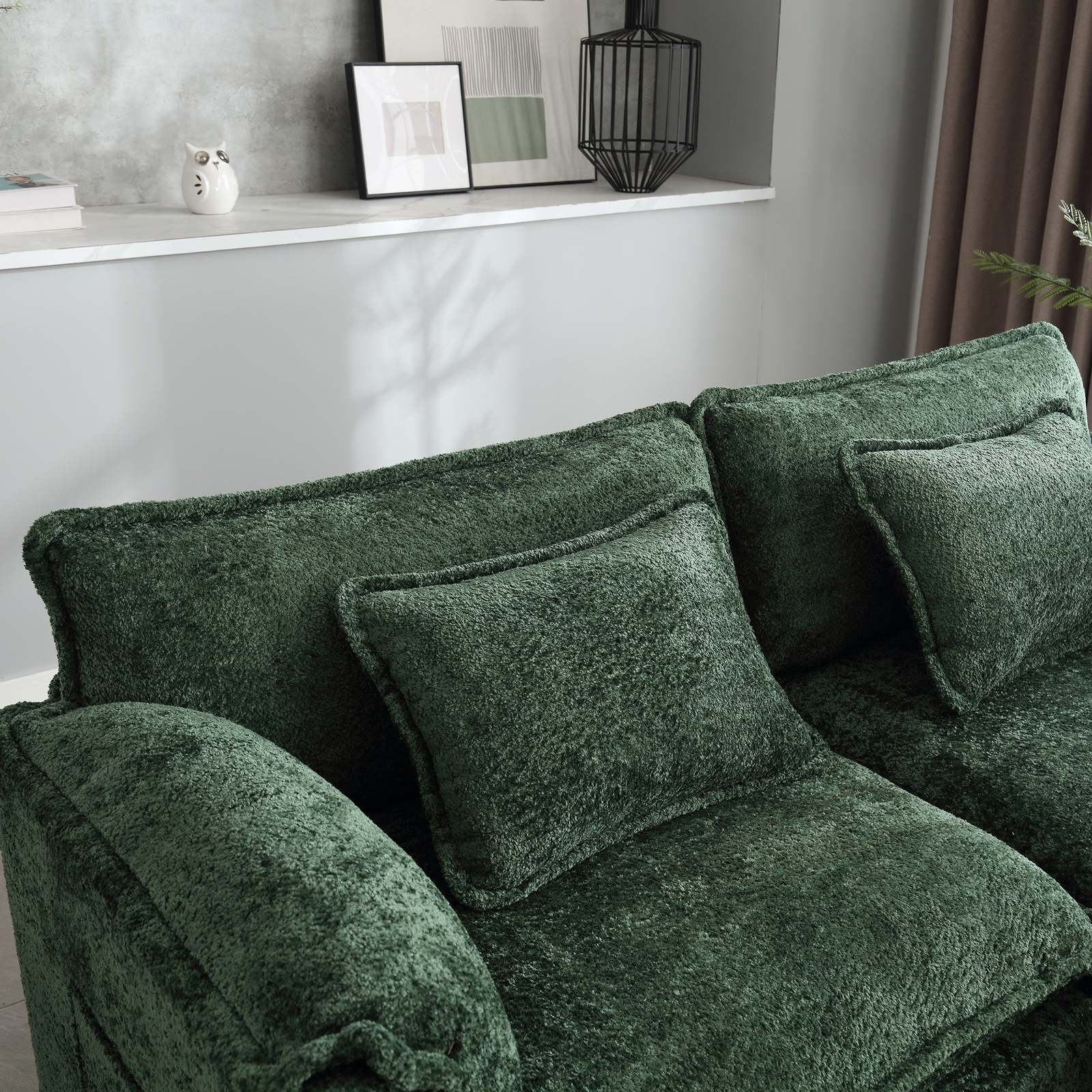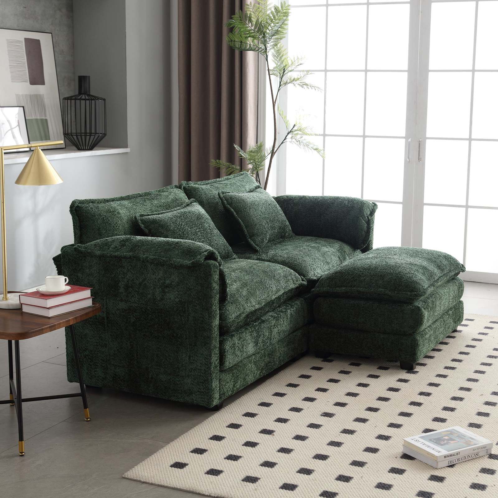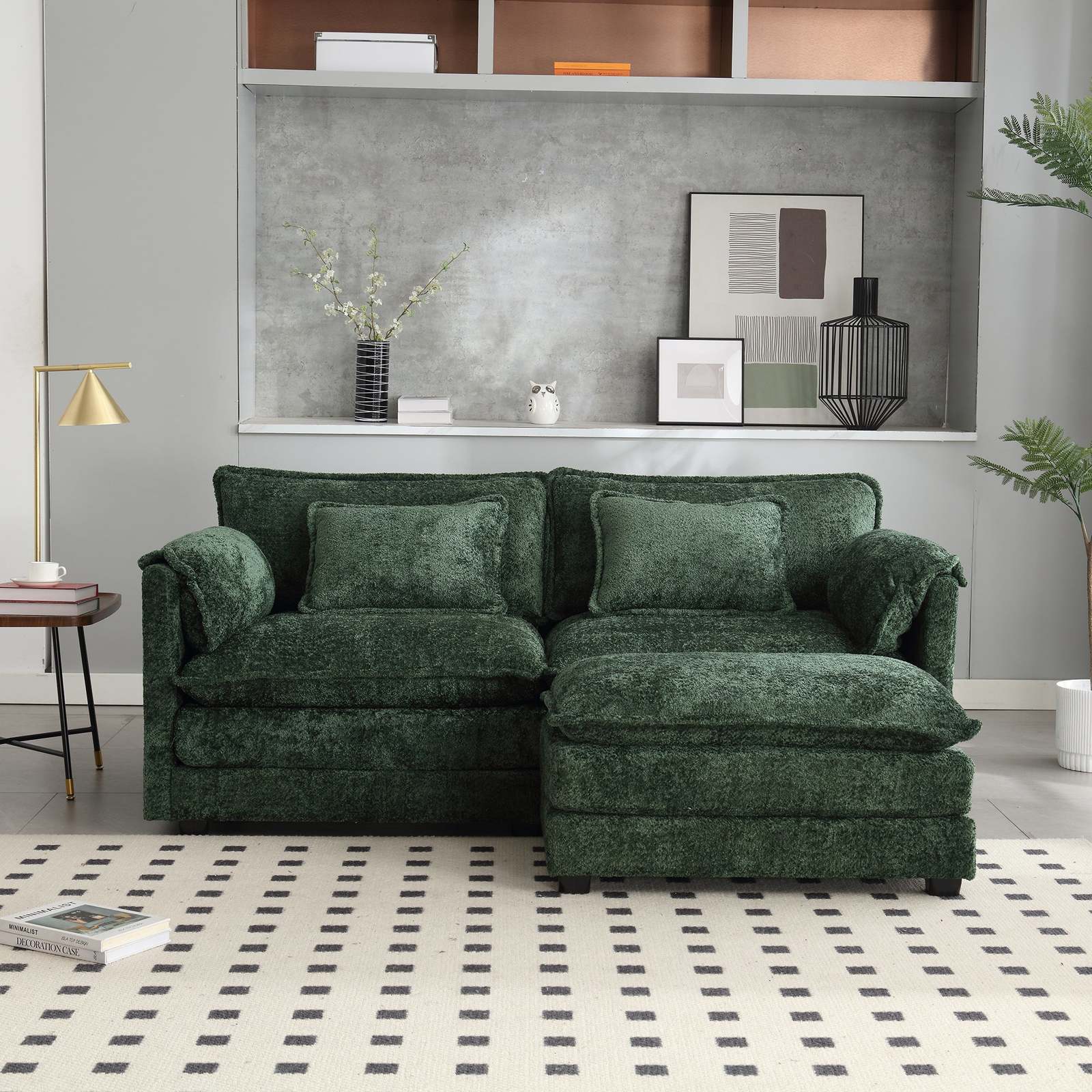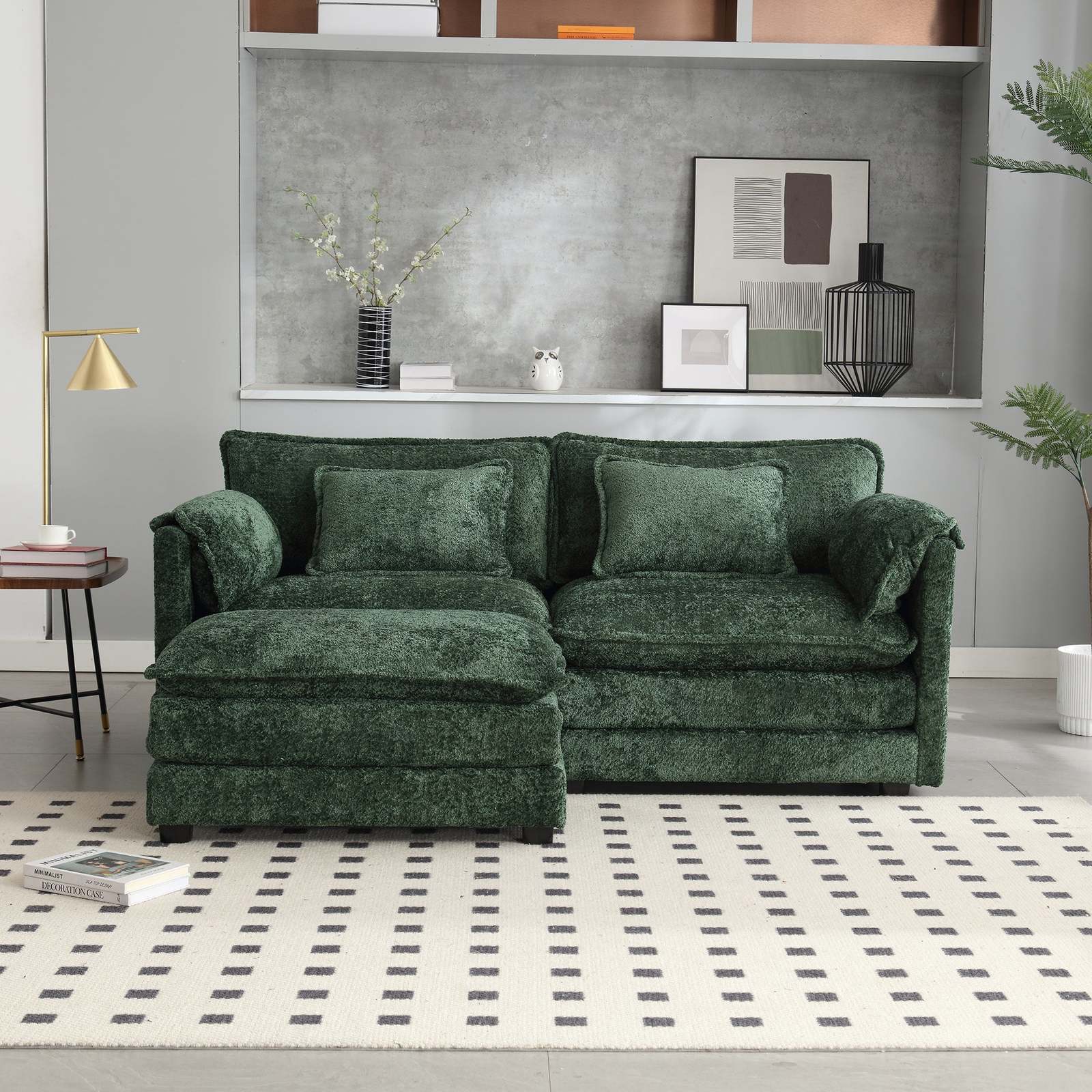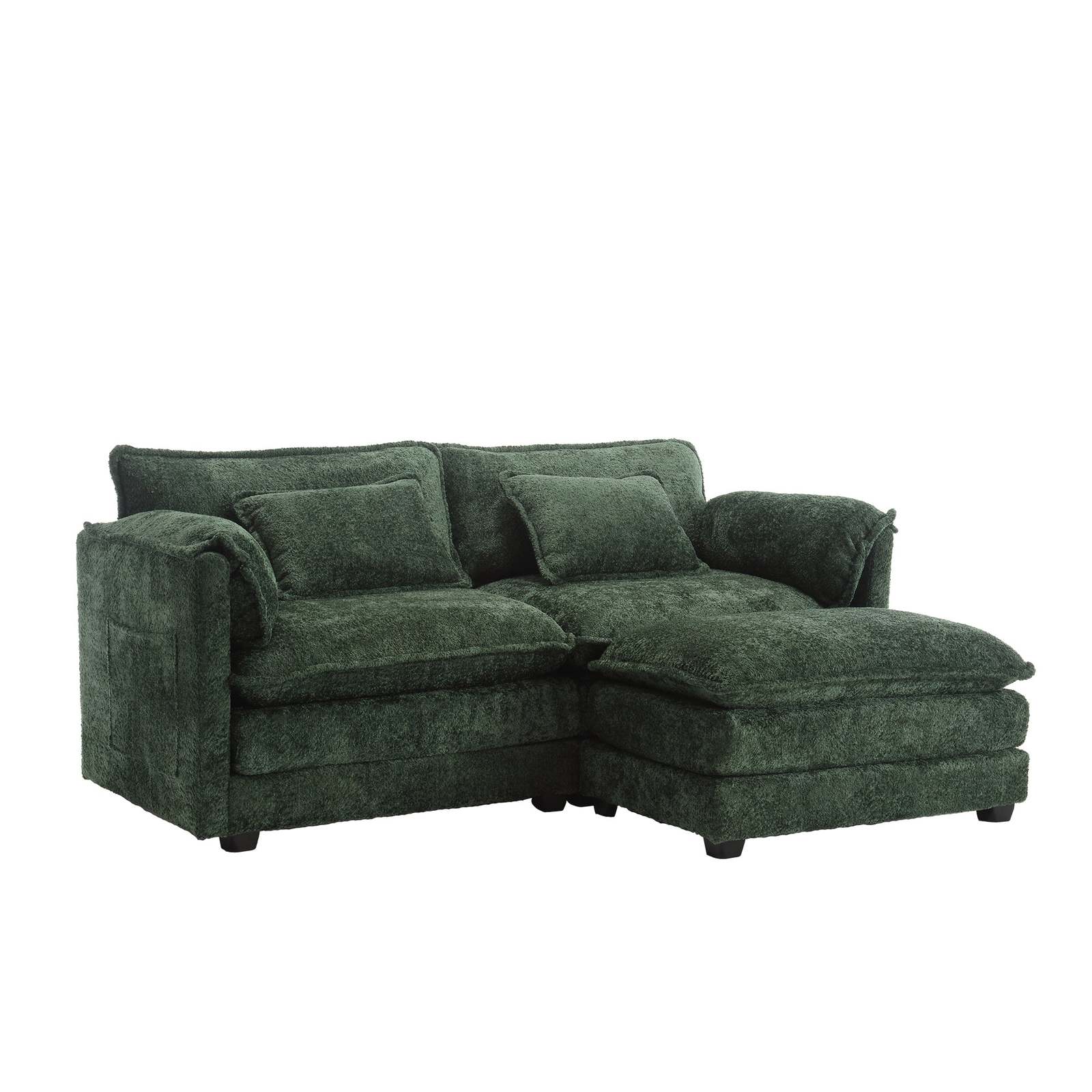 - Oversized Chenille Double Sofa with Footstool | Removable Arms + Pockets