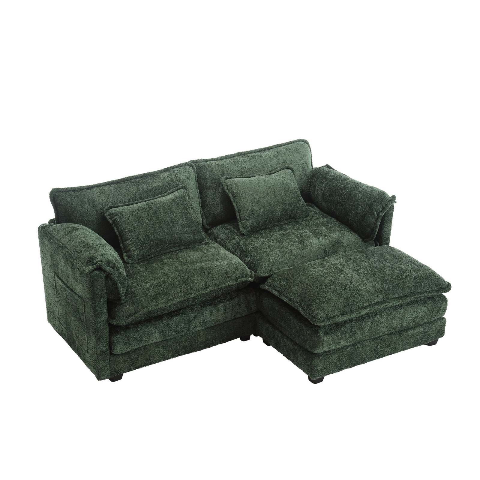 Oversized Chenille Double Sofa with Footstool | Removable Arms + Pockets
