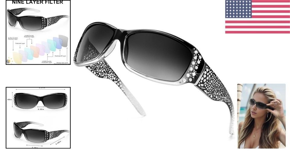 - Oversized Rhinestone-Frame Sunglasses for Women - Polarized UV400 Protection