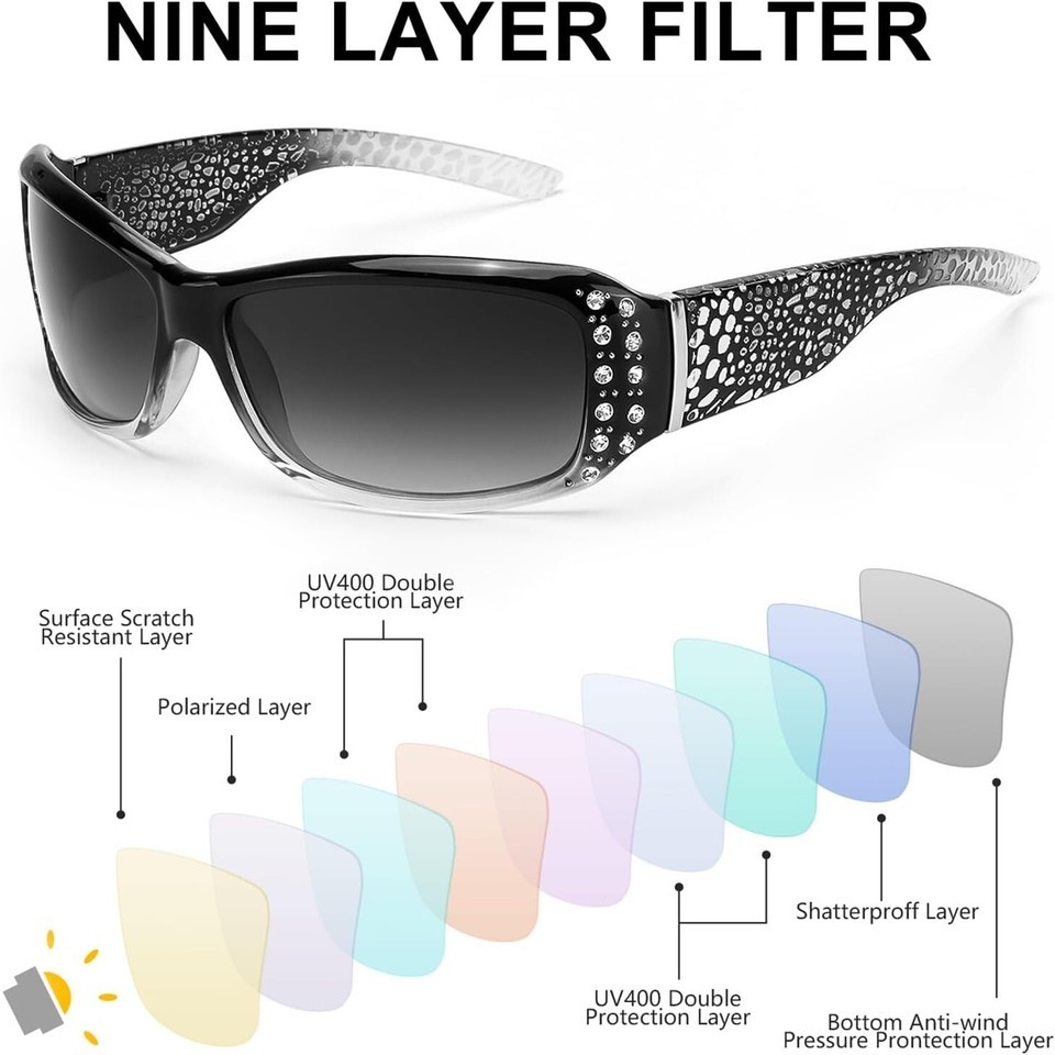 Oversized Rhinestone-Frame Sunglasses for Women - Polarized UV400 Protection