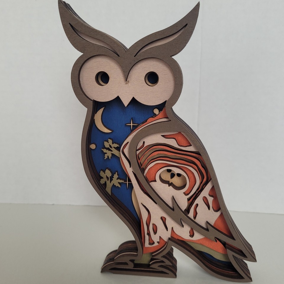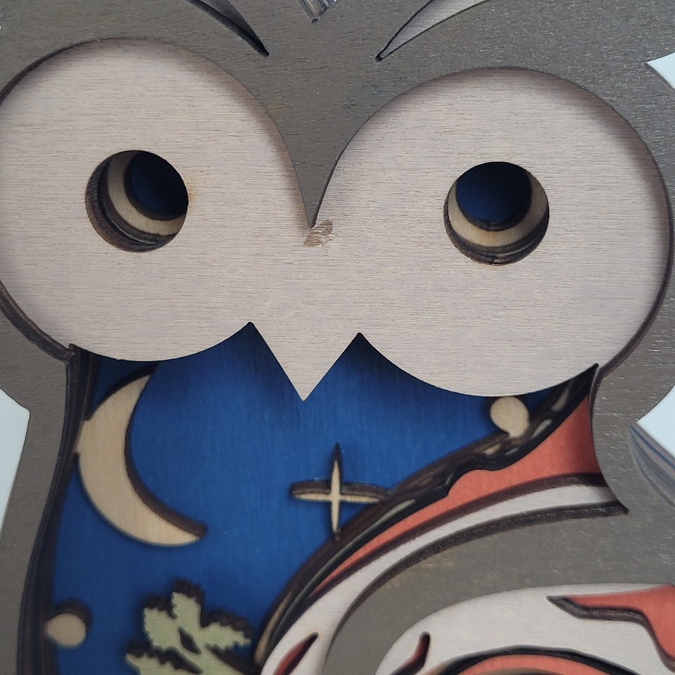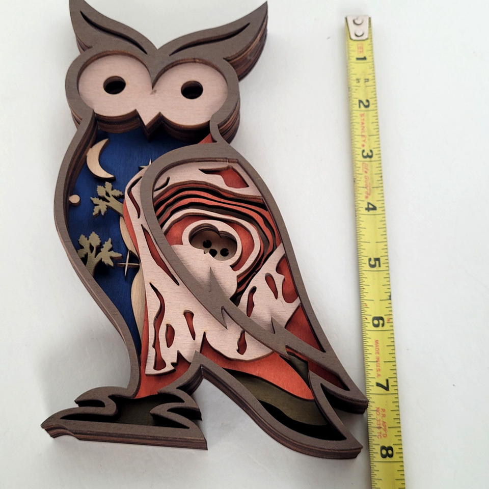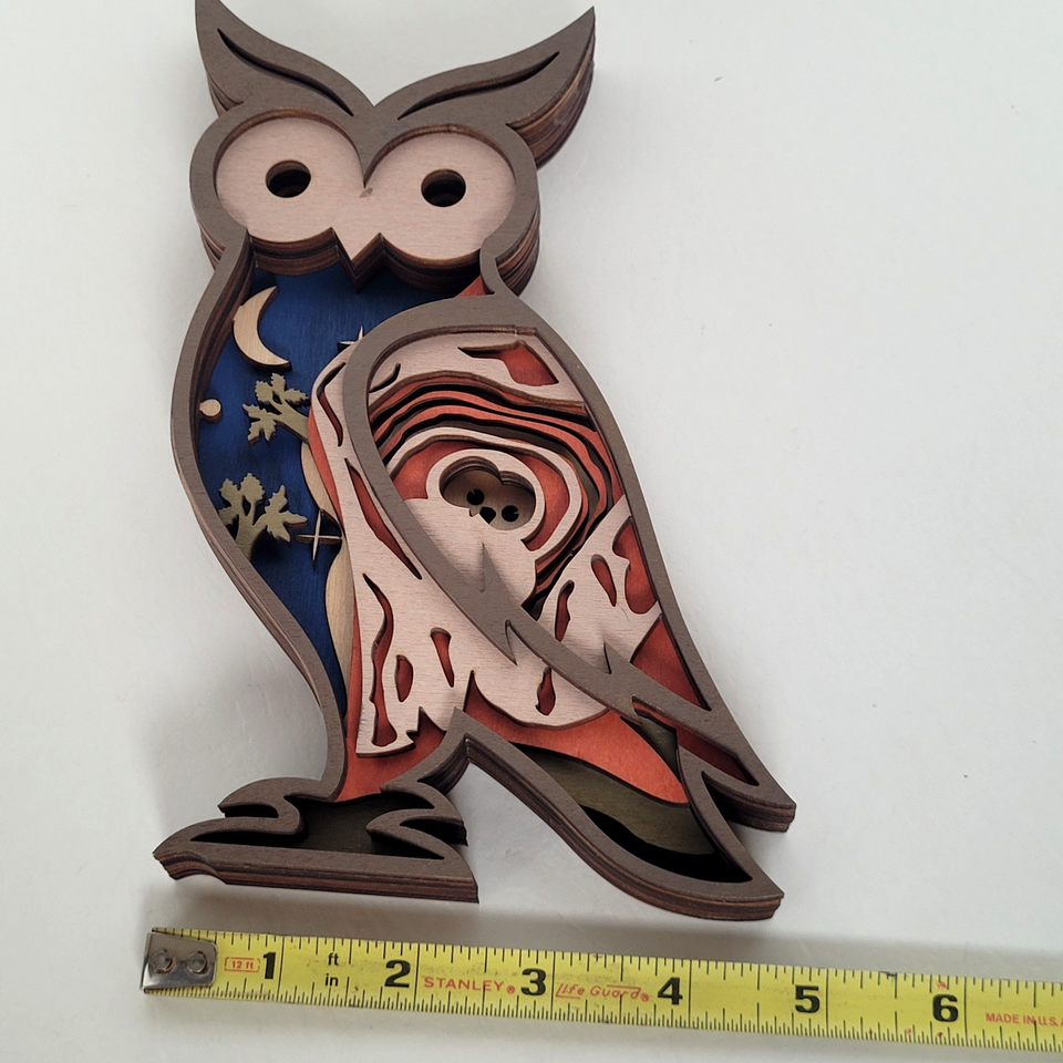 Owl Handcrafted Layered Wood Wall Art Shelf 3D Scene Laser Cut Handmade US