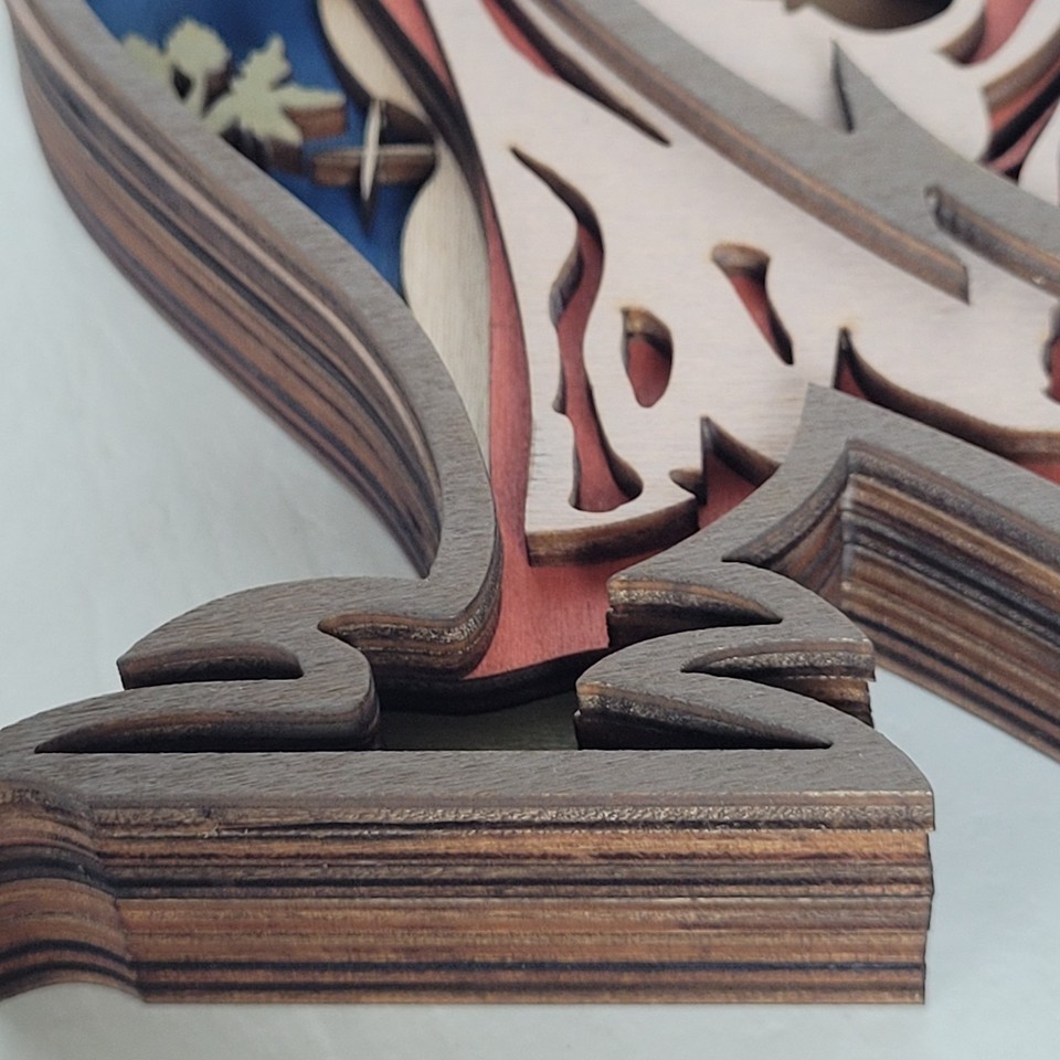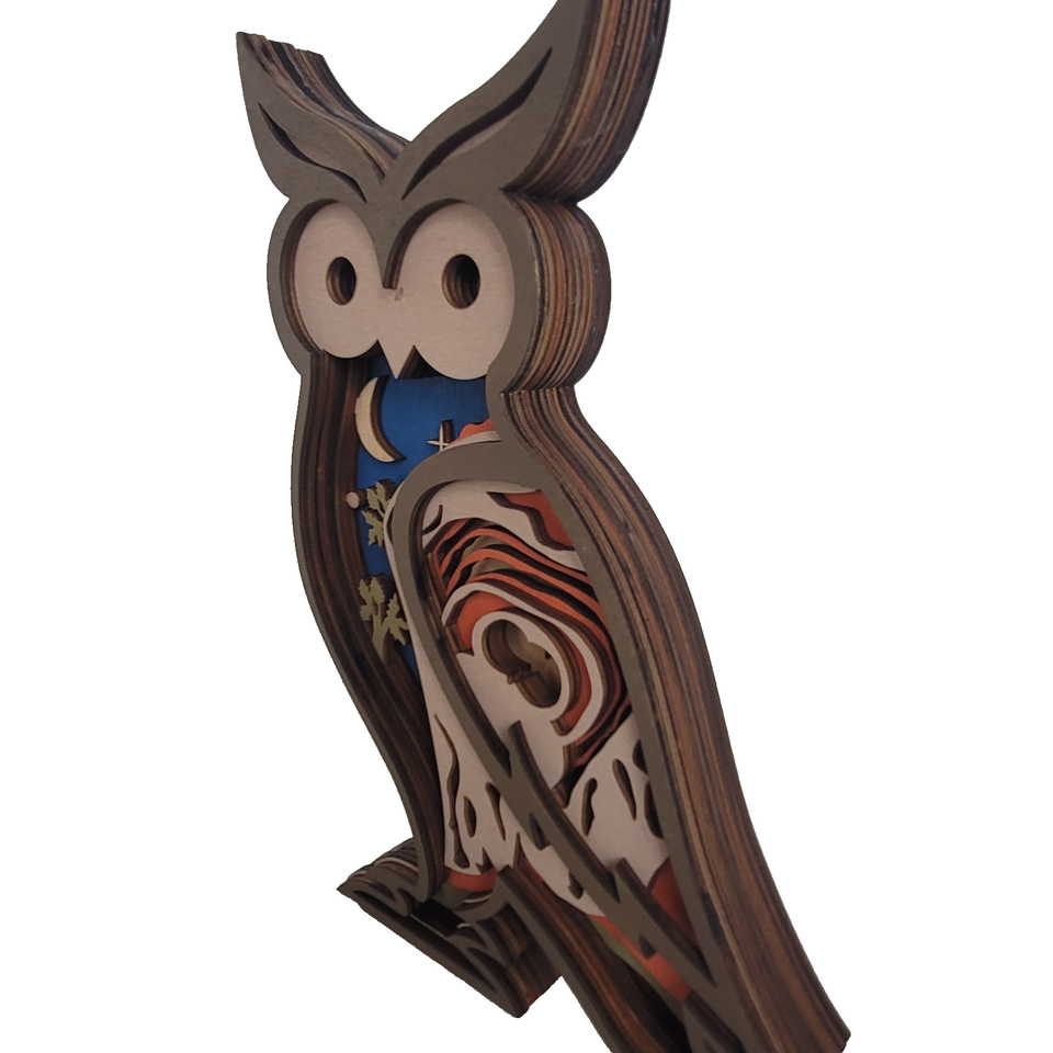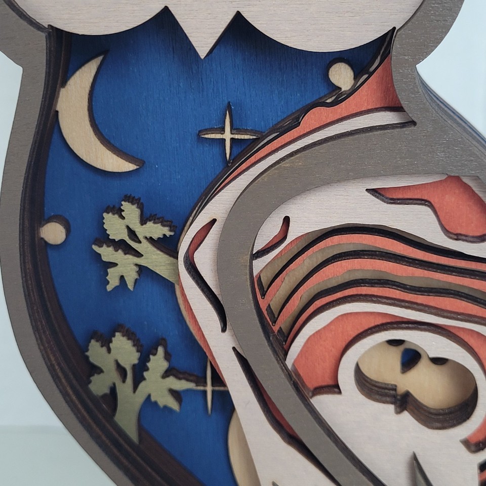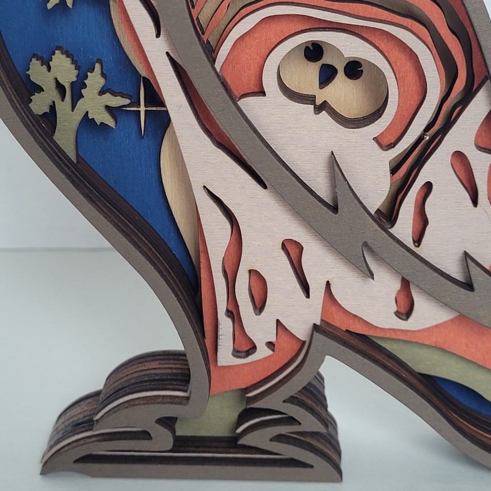 Owl Handcrafted Layered Wood Wall Art Shelf 3D Scene Laser Cut Handmade US