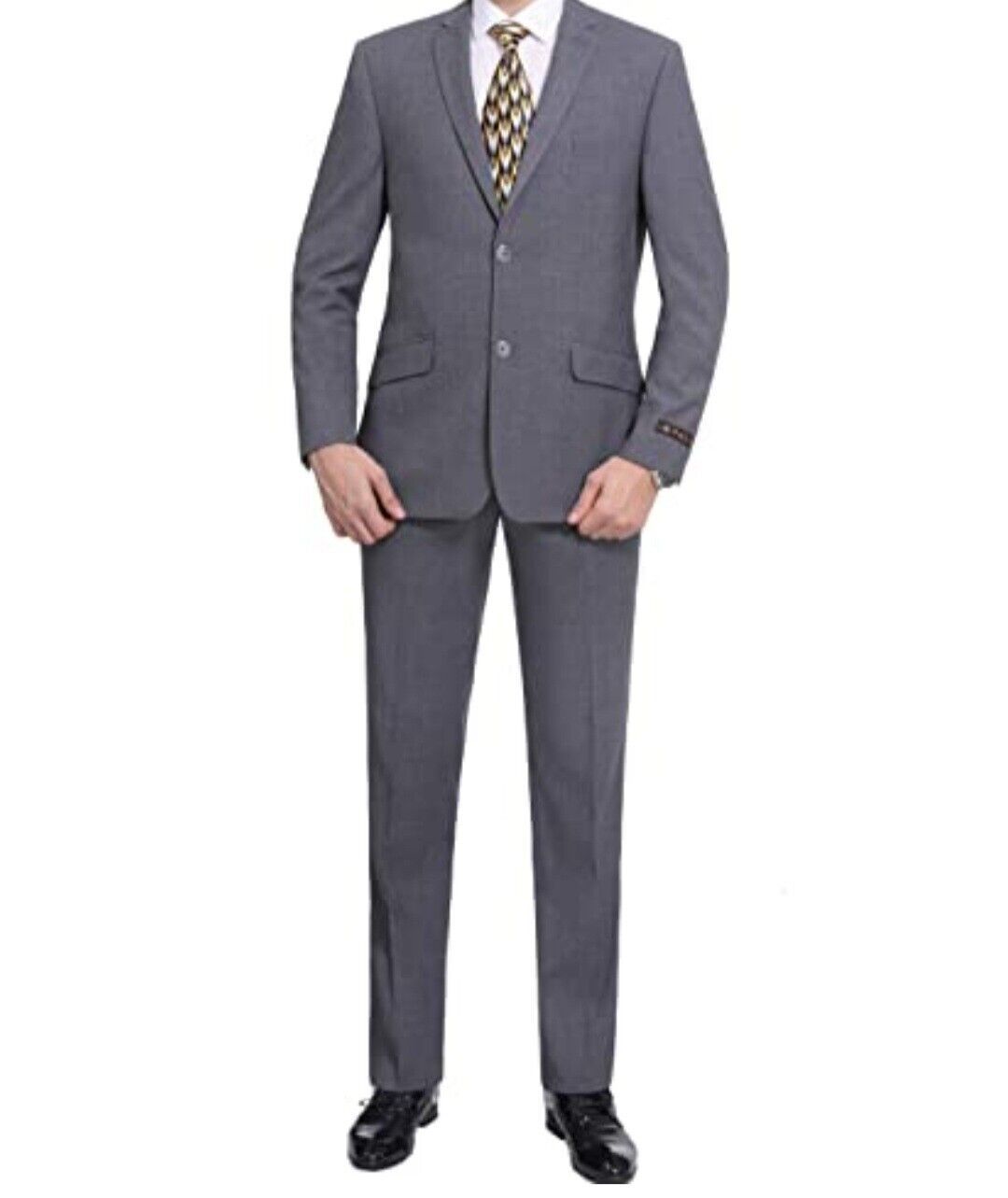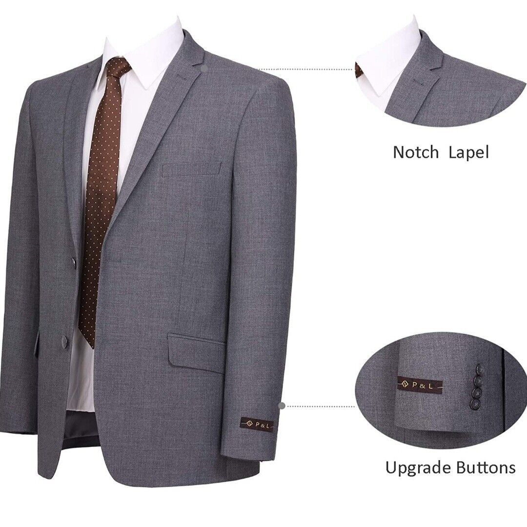 P L Men's Premium Slim Fit 2-Piece Business Wedding Prom Suit Jacket Blazer Tux.
