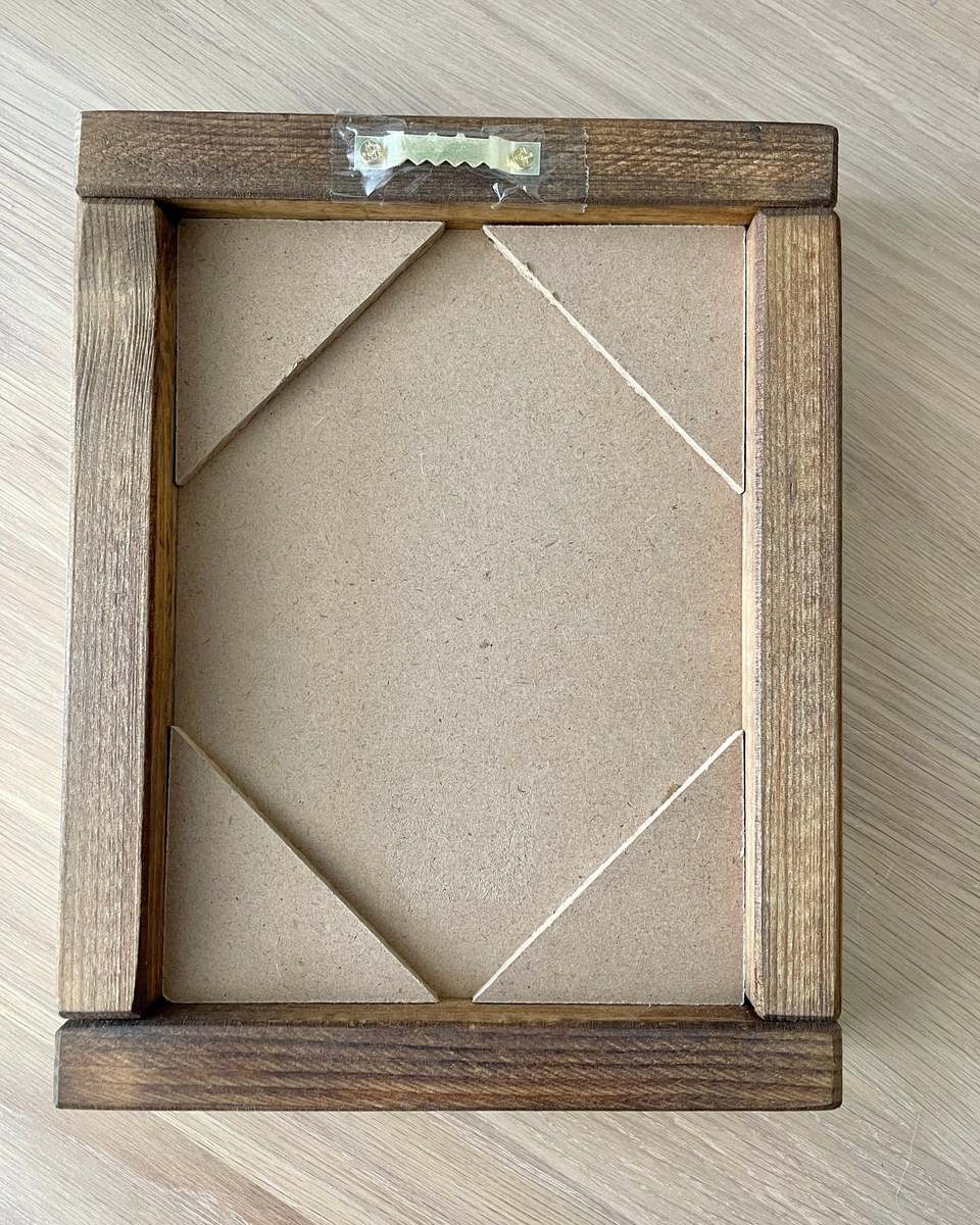 This brown stained wood frame is designed to better highlight the rustic charm. Handmade in the UK, this wooden sign comes with fixings at the rear so could be mounted or free standing.
