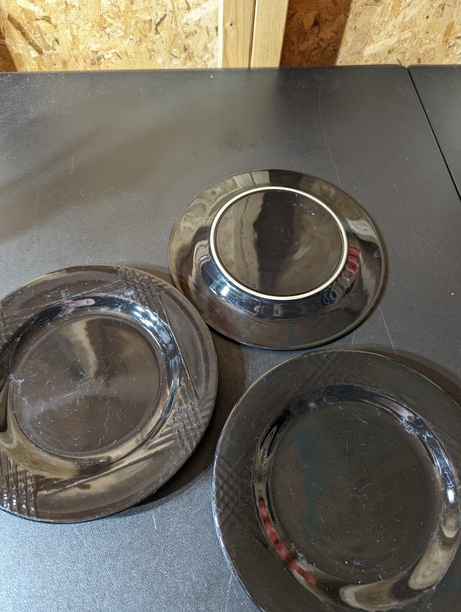 P Salad Plate 8" Black Gloss Matte USA 1990s Vintage set