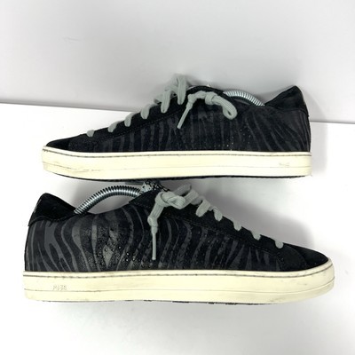 P448 Women?s John Distressed Fashion Sneaker Sz 37 / 7 Black Zebra Stripe Suede Good used condition, normal light wear. Please use zoom function to see complete details