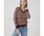 - PACT Sz M Stretch V Neck Pullover Knit Sweater Organic Cotton Multicolor