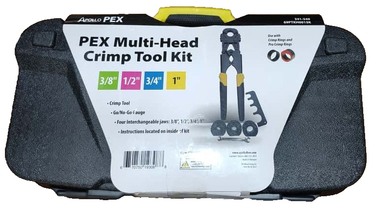 - PEX Multi-Head Crimp Tool Kit, Hardened Steel w/Comfort-Grip, Apollo 69PTKH0015K