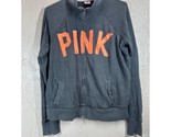 PINK Victoria's Secret Sweatshirt Full Zip Gray Coral Spellout Mock Neck Medium