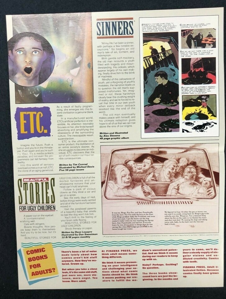 PIRANHA PRESS 10" x 14" promotional poster/flyer DC Comics (1989) Apologies for the camera flash!