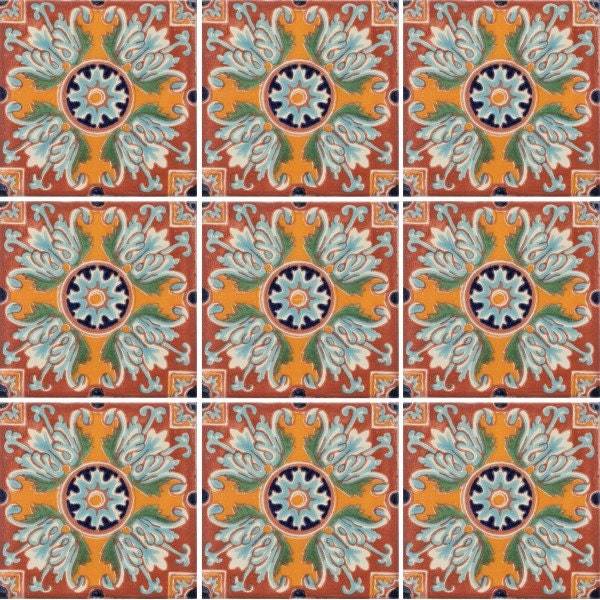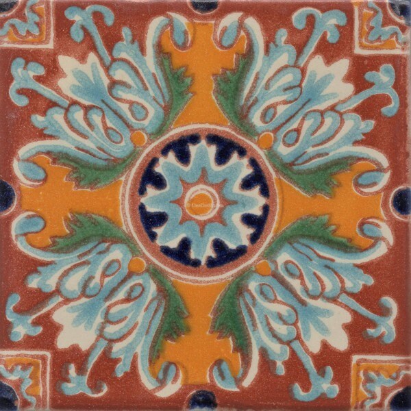 - POOL TILES Mexican Talavera Ceramic Frost Proof Handcrafted Tiles - Flor Romanes