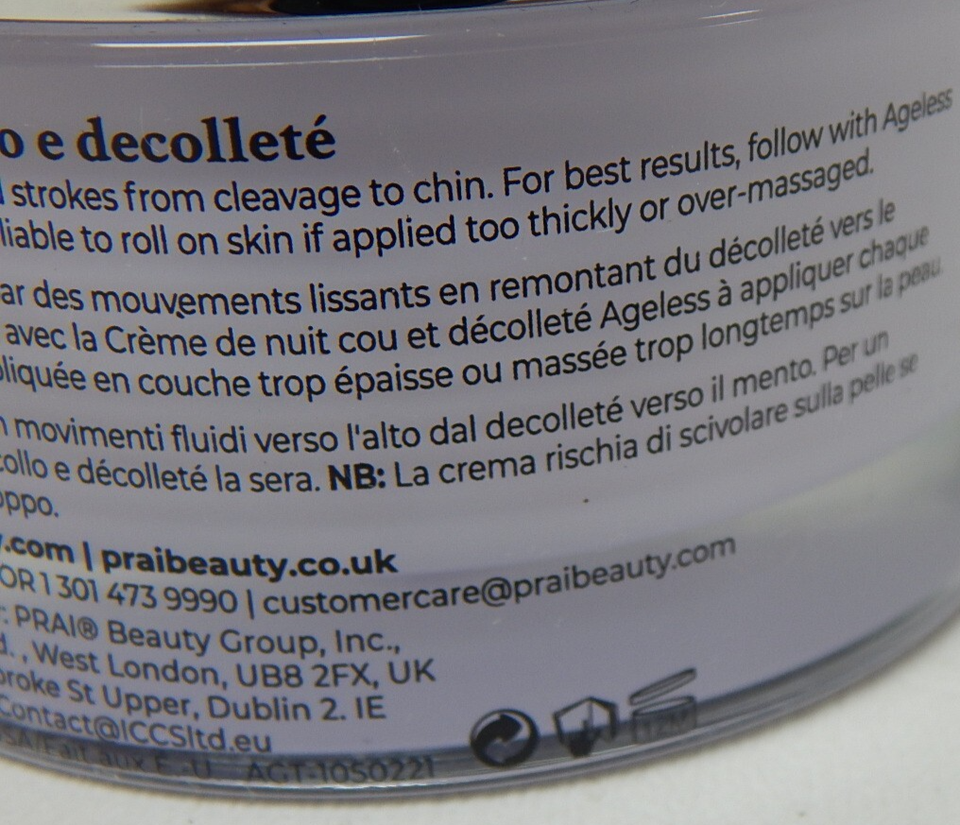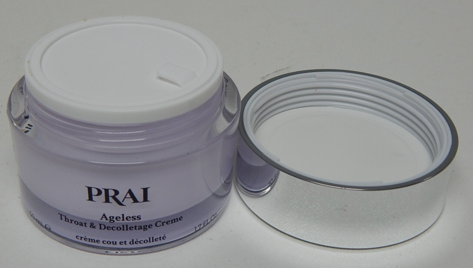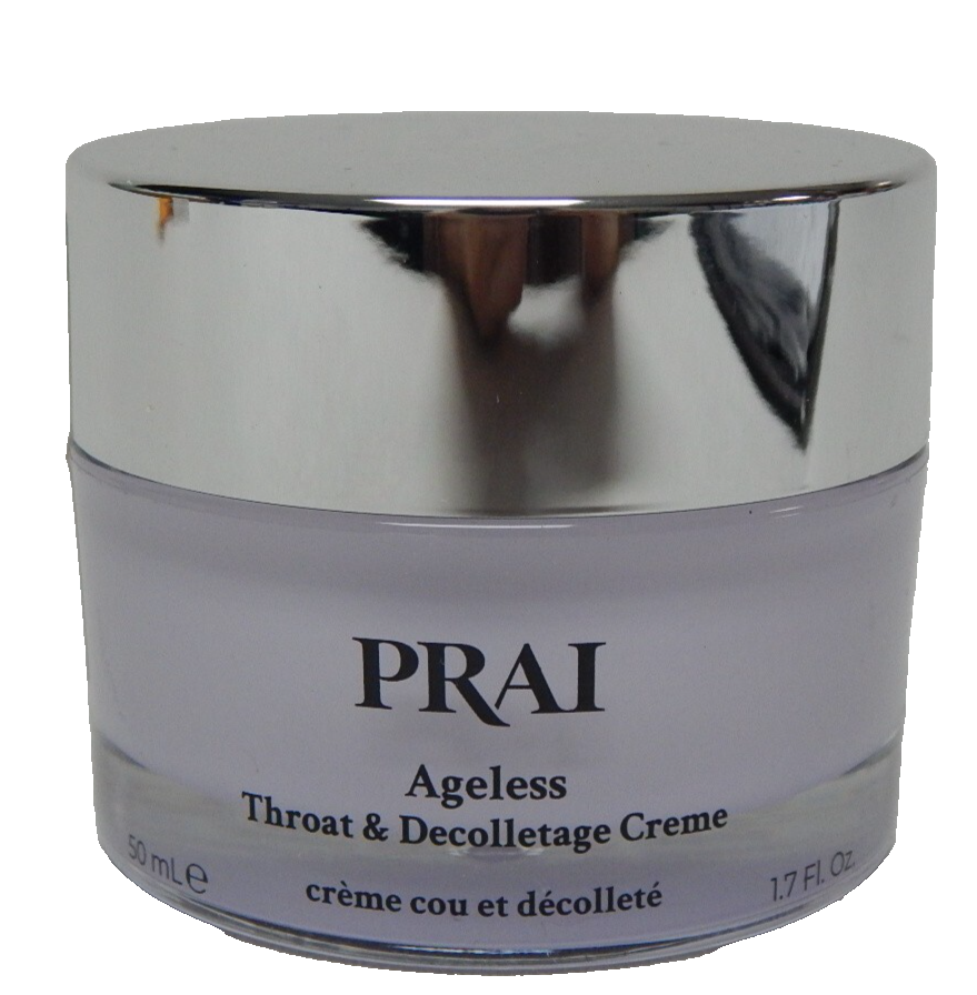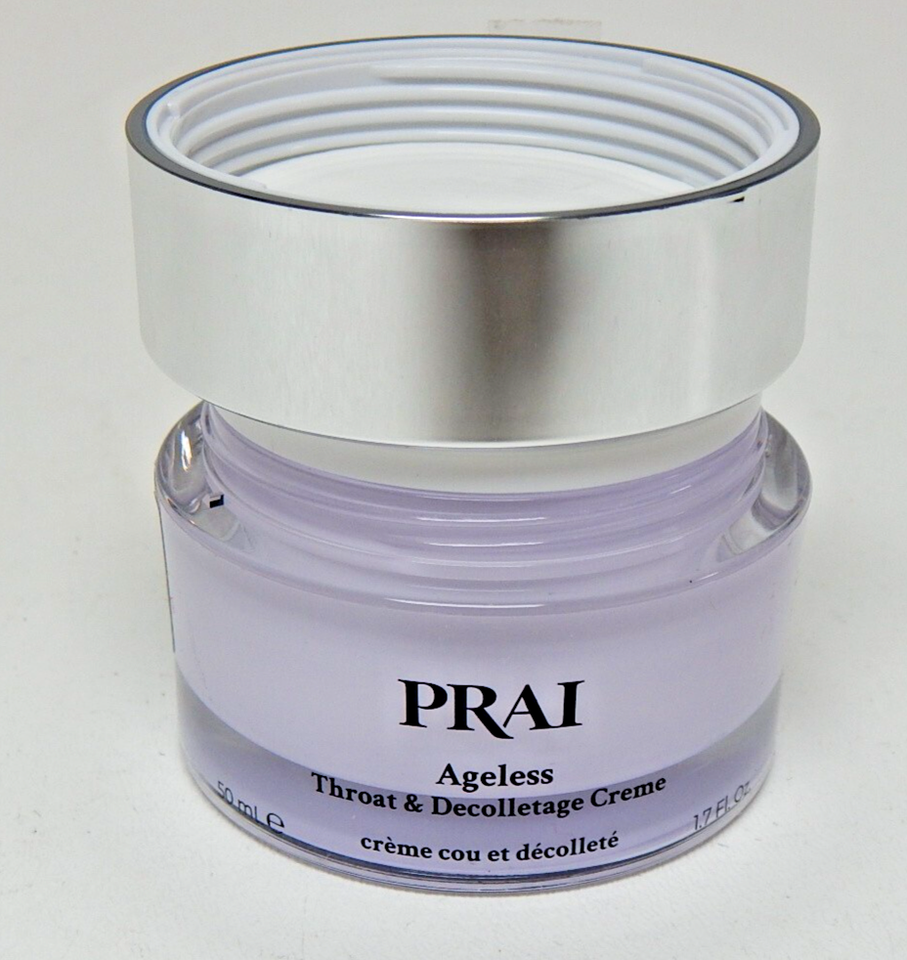 Rejuvenate your neck and decollete with PRAI Beauty?s Ageless Throat Decollete Creme, a luxurious 1.7?oz (50?ml) formula housed in a signature purple jar?new, sealed, and ready to defy signs of aging.