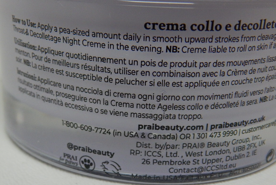 PRAI Ageless Throat Decollete Creme 1.7?oz / 50?ml Purple Jar Hydrating Daily