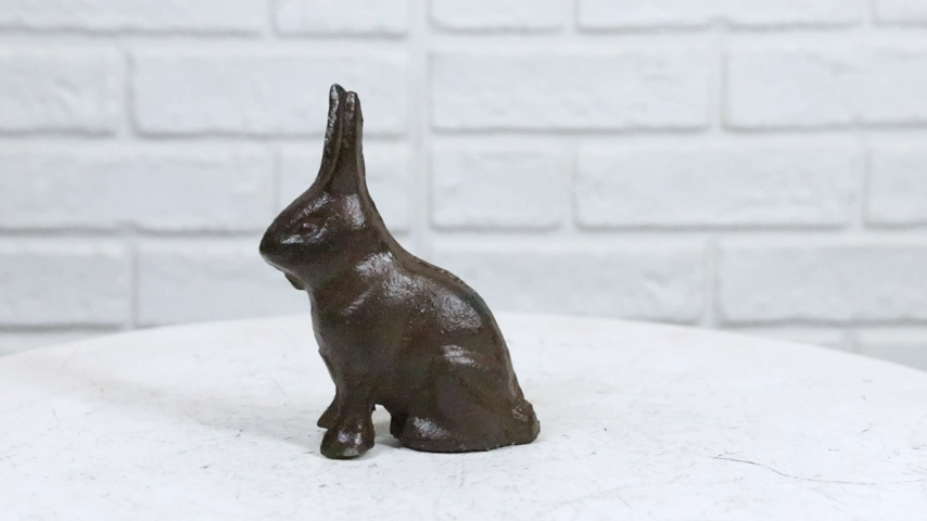 ? This enchanting Cast Iron Small Rabbit Sculpture is a captivating piece of art that will bring a touch of whimsy to your space! This meticulously crafted sculpture showcases the adorable charm of a rabbit, captured in stunning detail. The small size of this sculpture makes it versatile, allowing you to display it on shelves, desks, mantels, or any surface that needs a touch of character.