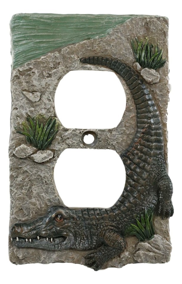 ? A simple change can make a huge impact on the look and feel of any room. Something as simple as a switch plate; Get rid of the mundane plainp lastic switch plates on your wall and replace them with these alligator themed plates! Meticulously sculpted in 3D form then hand painted, each plate features a bayou swamp alligator in their natural habitat. If you are a Gators fan or love this prehistoric beast, these switch plates are perfect for you!