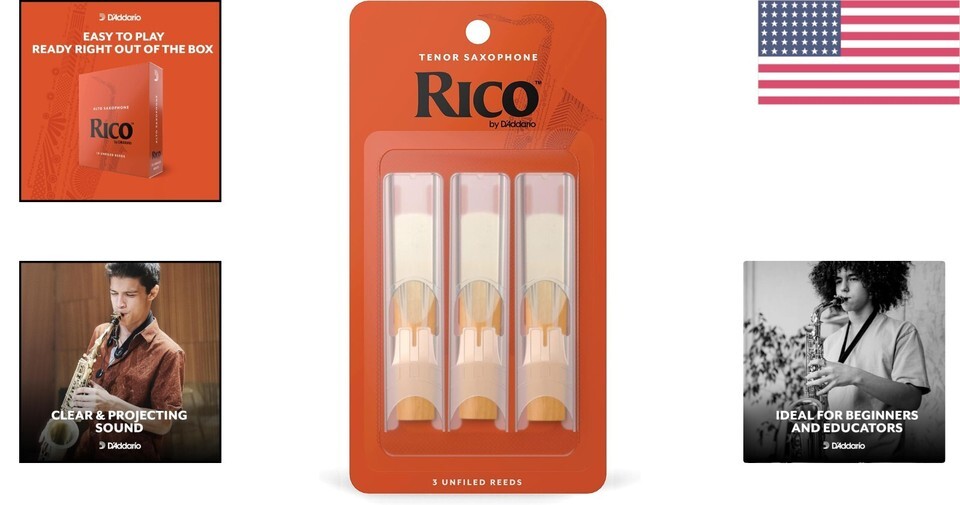- Pack of 3 Rico Tenor Saxophone Reeds - Strength 2.5 for Immediate Sound Quality