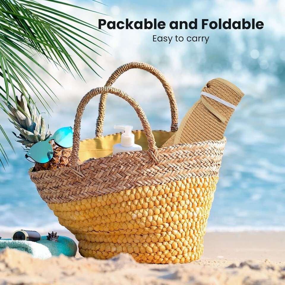 Packable Wide Brim Sun Hat for Women - Stylish Straw Visor with Adjustable Fit