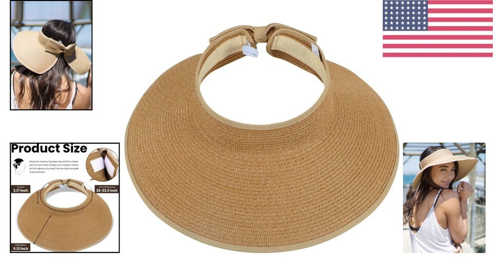 - Packable Wide Brim Sun Hat for Women - Stylish Straw Visor with Adjustable Fit