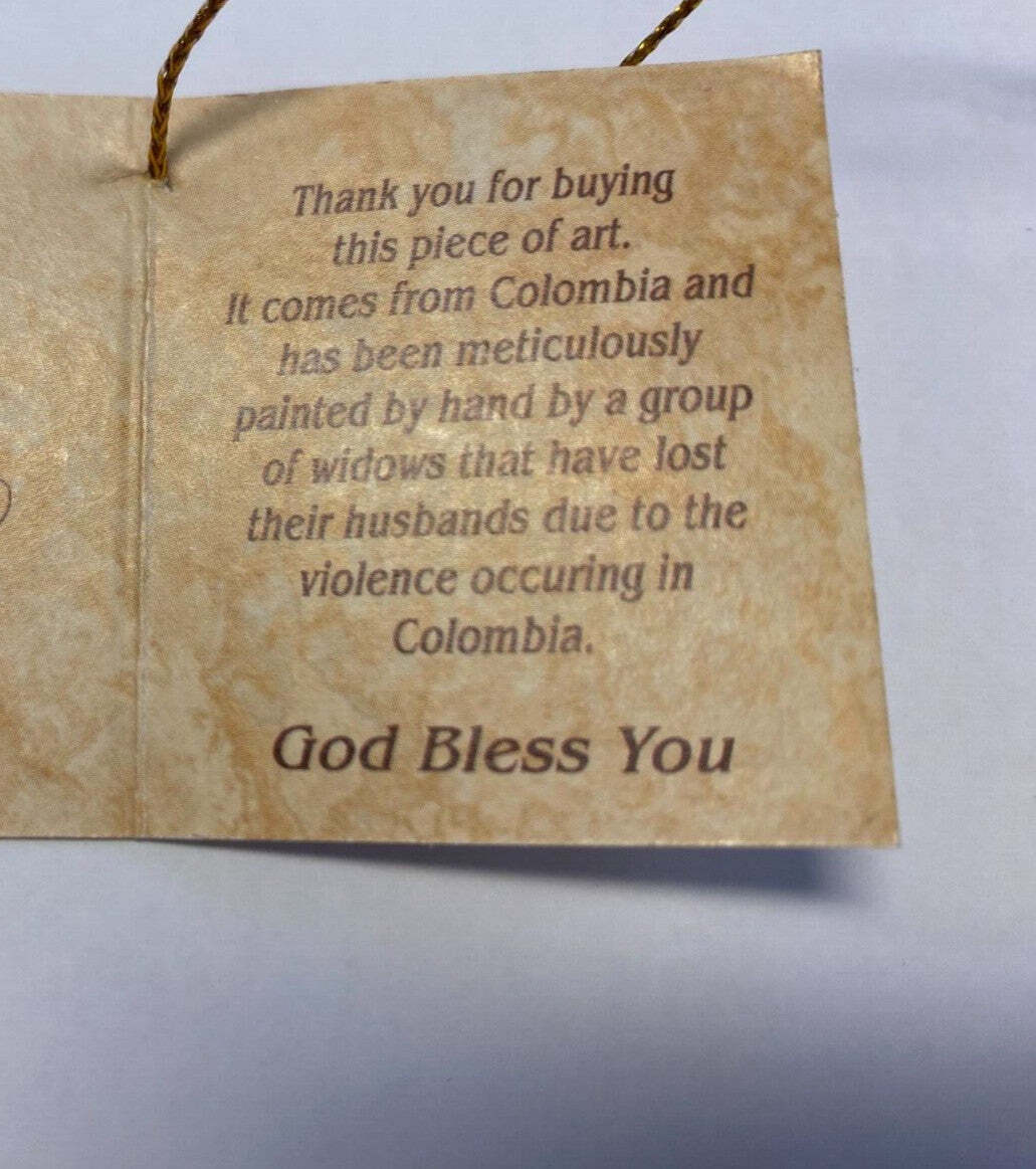 These boxes were made by a group of widows that have lost their husbands due to the violence occurring in Colombia. They are hand painted. It's from the Liscano, Inc. Collection.