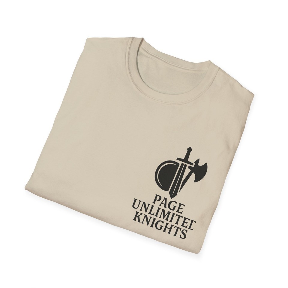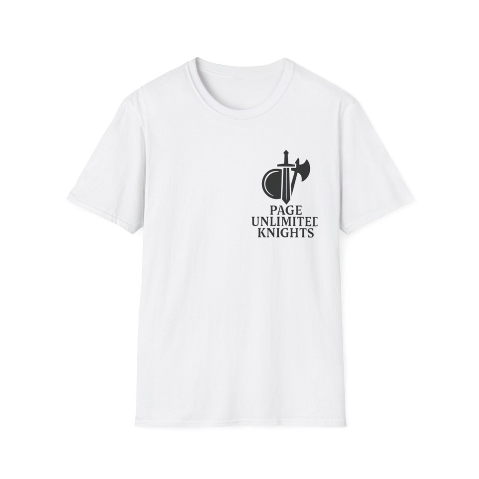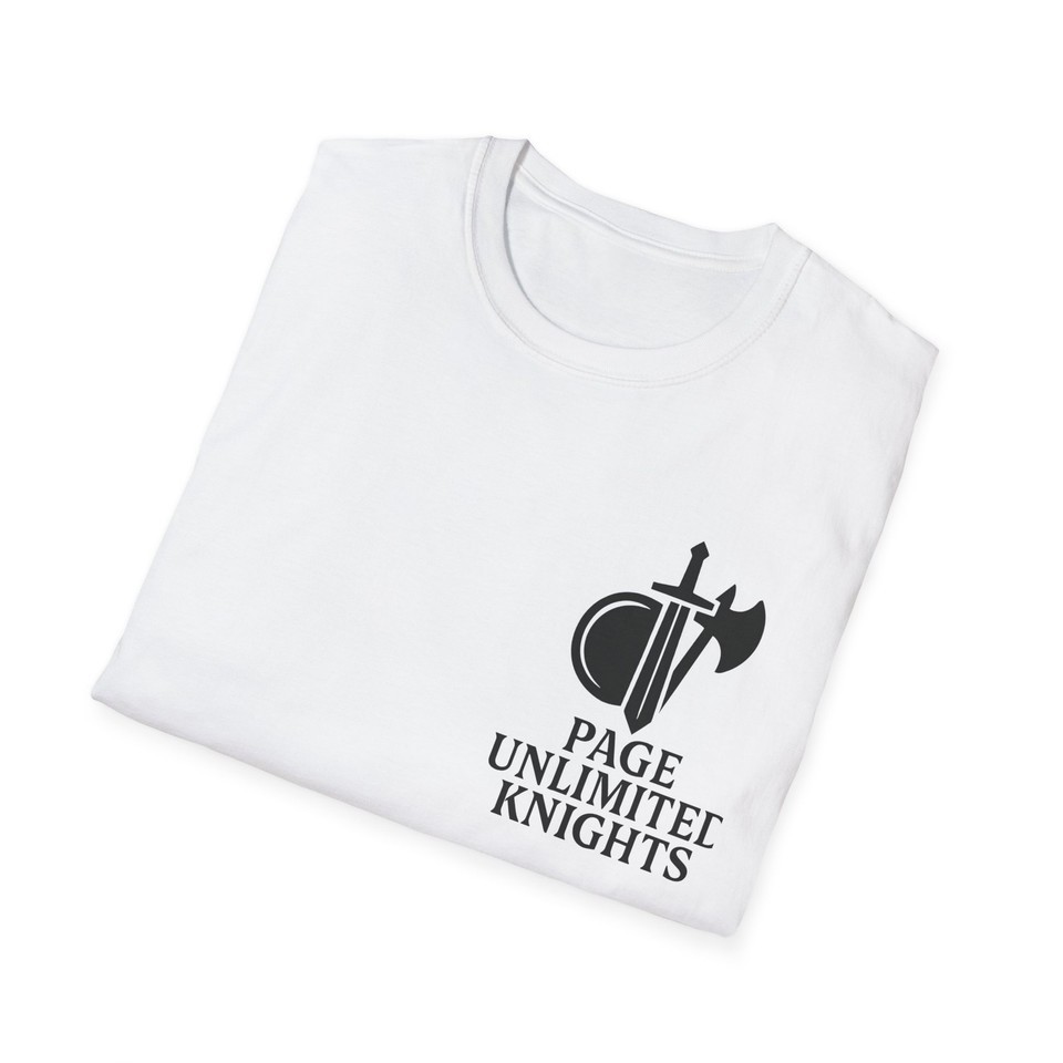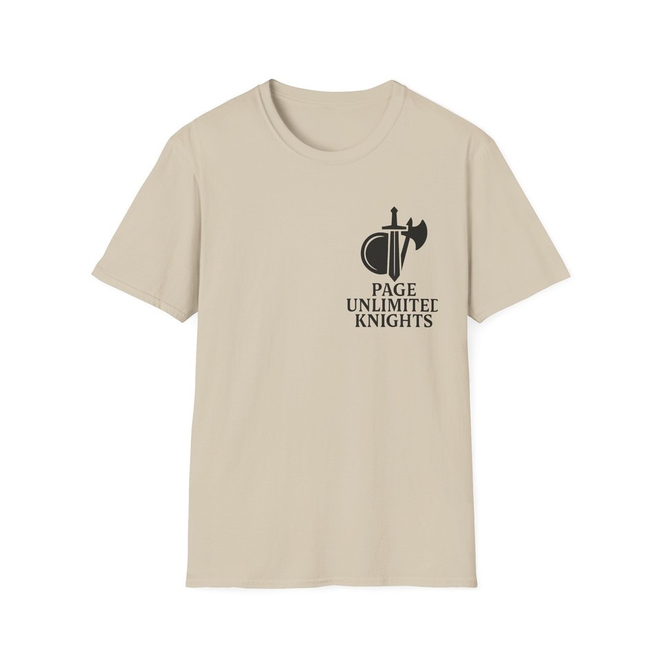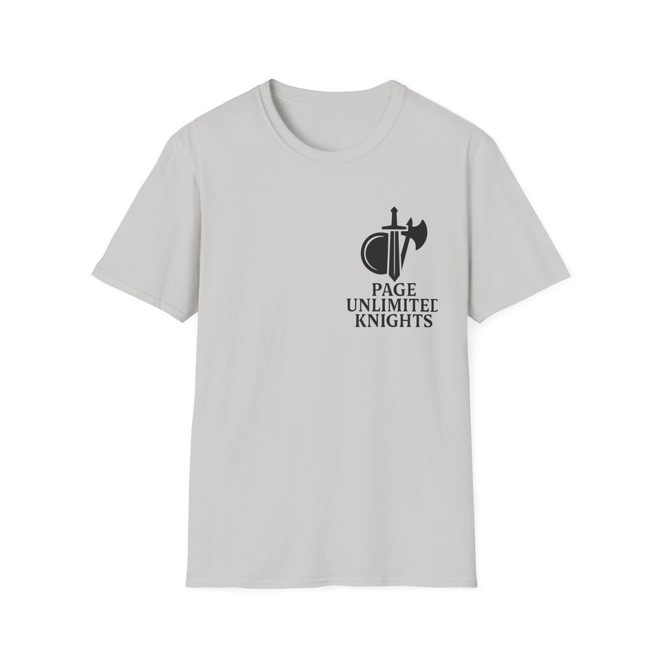 Page Unlimited Knights T-Shirt ? Classic Comfort, Everyday Style Show off your style with the Page Unlimited Knights T-Shirt ? a versatile and comfortable tee designed for any occasion. Whether you're dressing up or keeping it casual, this shirt features a classic fit, crew neckline, and soft 100% ring-spun cotton fabric that feels great all year long. Ideal for adults, this high-quality tee includes inner neck labels and sleeve details that complement its clean, timeless look. Product Features: Lightweight yet durable fabric with a smooth finish and no side seams Ribbed knit collar for lasting elasticity and shape retention Shoulder tape enhances stability and prevents stretching Made with ethically grown and harvested U.S. cotton Versatile design works well for casual, semi-formal, or layered outfits Care Instructions: Do not dry clean Do not bleach Tumble dry on low heat Iron, steam, or dry on low heat Machine wash cold (max 30C or 90F) with similar color