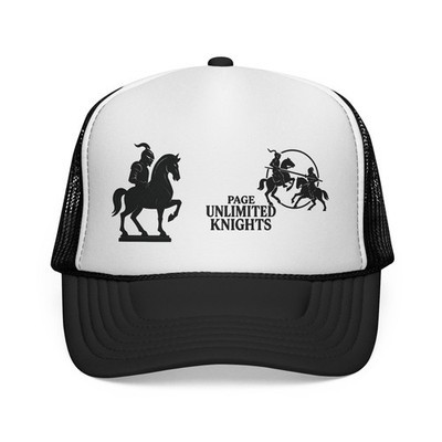 Show your support for Page Unlimited Knights with this classic trucker cap, built for comfort, durability, and everyday wear. Featuring a 100% polyester foam front and breathable 100% nylon mesh back, this cap is made to handle regular use while keeping you cool.