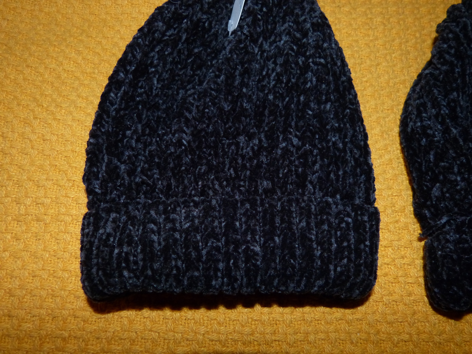 - PAIR OF BLACK WEAVED BEANIES SALE Adult Stretchy Poly Blend Fabric Winter Hats