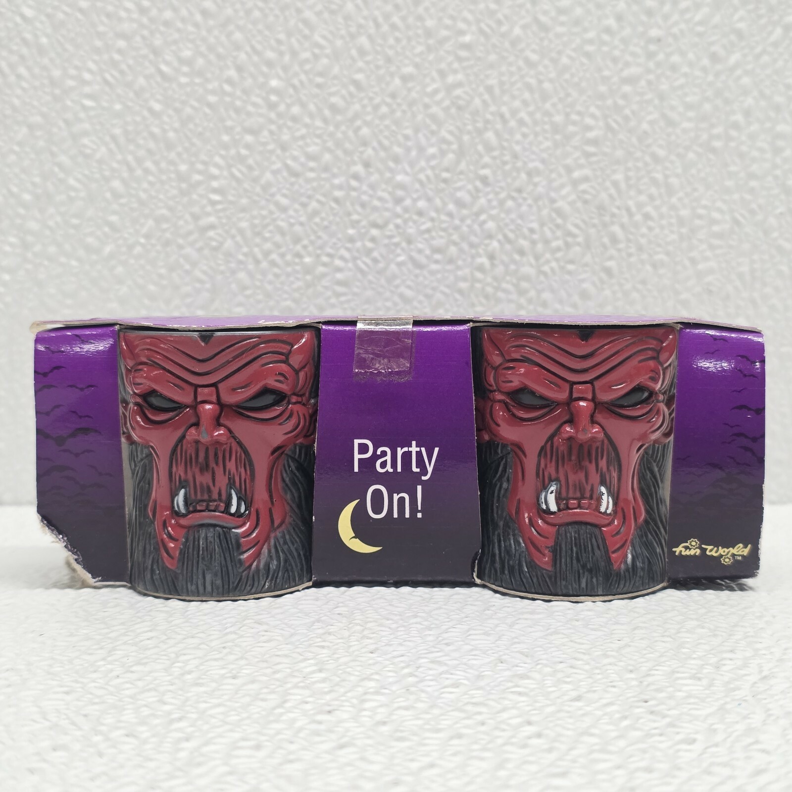 - Pair of Fun World Devil Vampire Head Halloween Horror Shot Glass Set