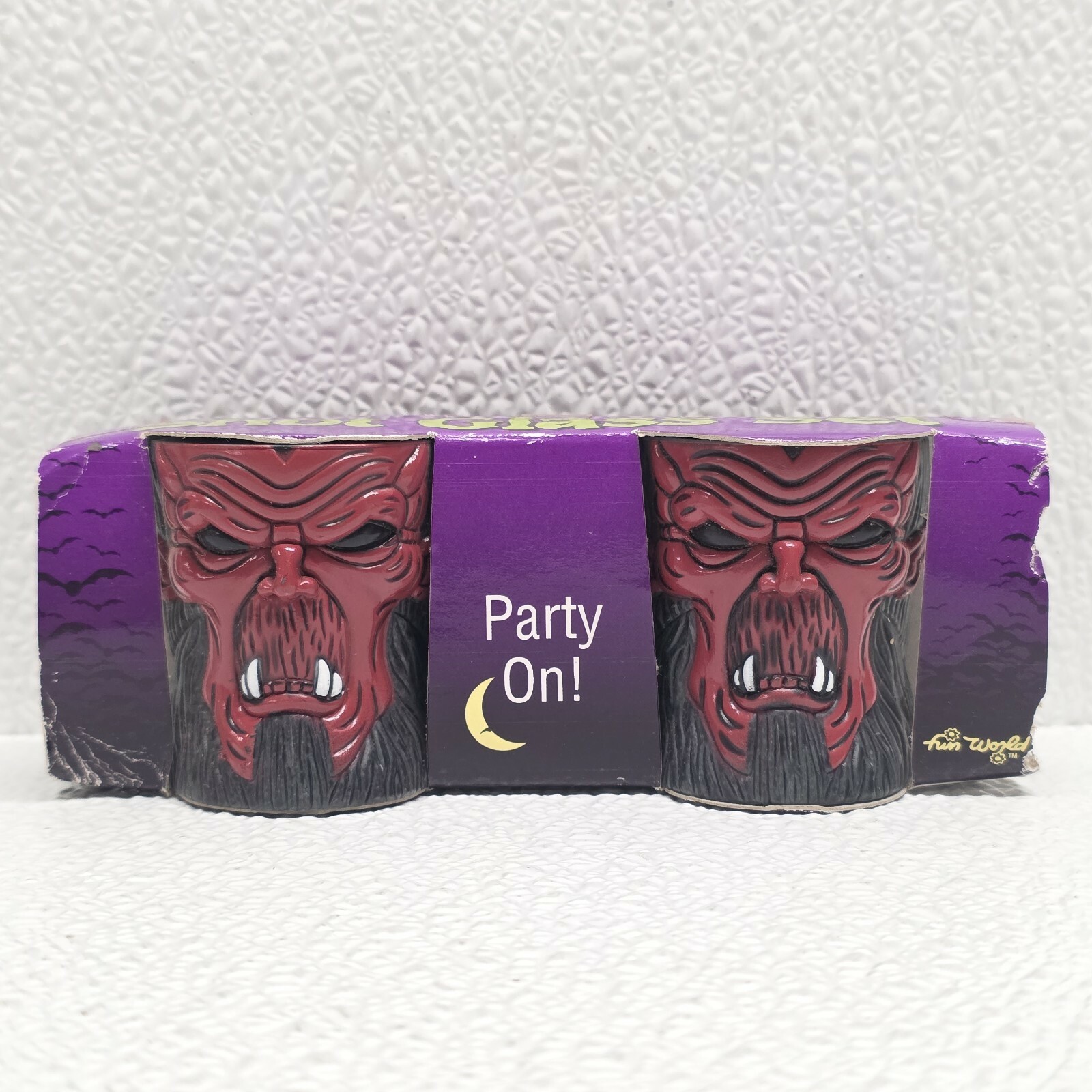 Pair of Fun World Devil Vampire Head Halloween Horror Shot Glass Set