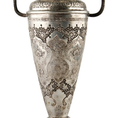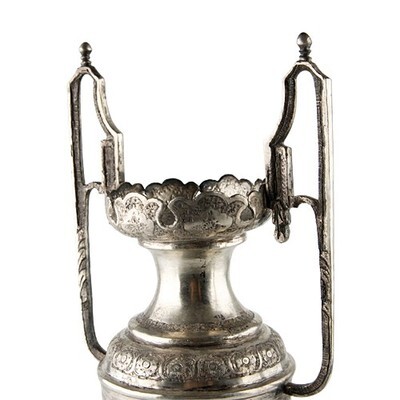 - Paire De Ancien Vtg Perse Argent Gravé Vases