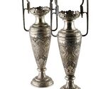 Paire De Ancien Vtg Perse Argent Gravé Vases
