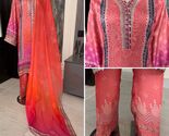 - Pakistani Pink 3 Pcs Fancy Shamoz Silk Dress with thread embroidery ,XL