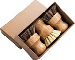 Palm Pot Brush- Bamboo Round 3 Packs Mini Dish Brush Natural Scrub Brush Durable