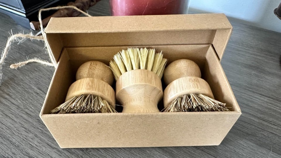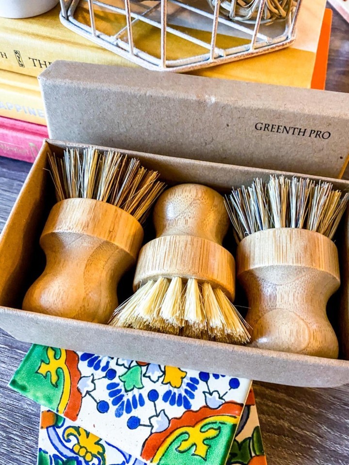 Palm Pot Brush- Bamboo Round 3 Packs Mini Dish Brush Natural Scrub