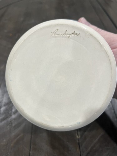 This beautiful bowl is a one-of-a-kind piece of art pottery created by Pam Snyder. The unique blue and white design is eye-catching and the intricate piercing adds an element of elegance. The bowl is made of high-quality ceramic material and is signed by the artist. It is perfect for adding a touch of sophistication to your pottery collection or for use as a decorative piece in your home.