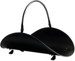 Black, fireplace log basket with handle, steel construction, handle makes transporting Wood easy, feet are supplied for stability, nicely compliments any screen including #15961