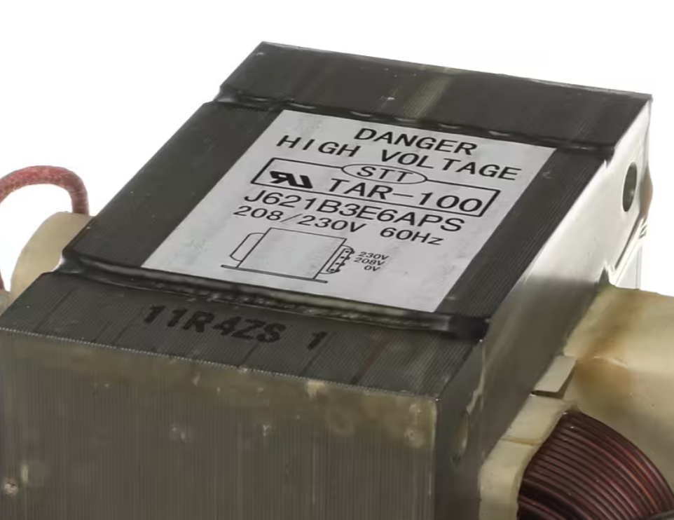 The Panasonic J621B3E6APS Transformer is a genuine OEM high voltage transformer used in Panasonic commercial microwave ovens to power the magnetron. This transformer steps up internal voltage, generating the energy required for fast and efficient microwave cooking. Designed for use in demanding foodservice environments, the J621B3E6APS delivers consistent performance and is essential for restoring heating functionality in compatible Panasonic models.