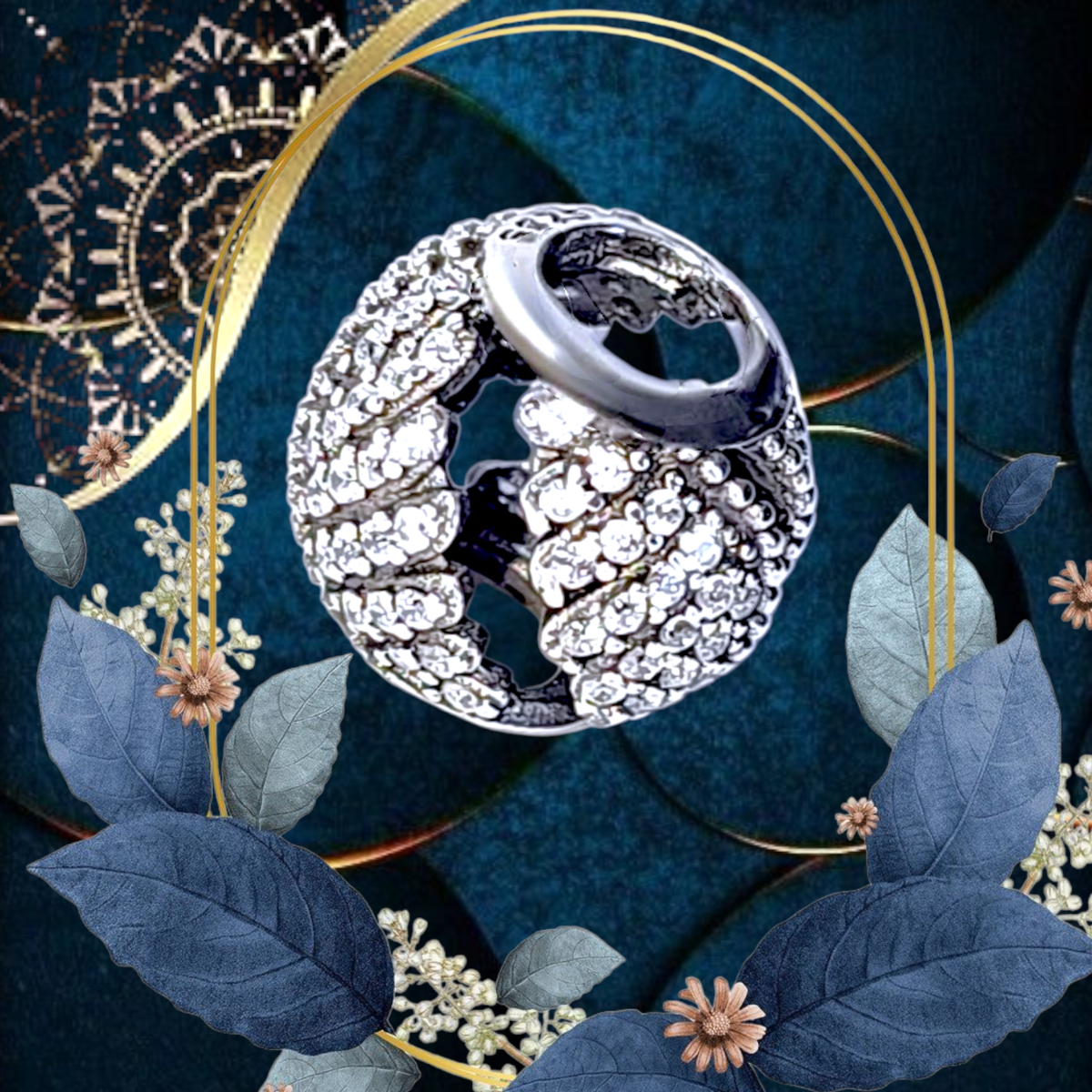The Pandora Majestic Feathers Clear CZ Charm #791749CZ is a beautiful and elegant charm featuring a round feather shape with clear CZ accents. Made of sterling silver with a pave setting style, this charm is signed by Pandora and crafted with nickel-free materials. Perfect for occasions like Mother's Day, Christmas, anniversaries, and birthdays, this charm exudes a theme of beauty. With its high-quality materials sourced from Thailand and a metal purity of 925, this charm is a lovely addition to any bracelet or charm collection